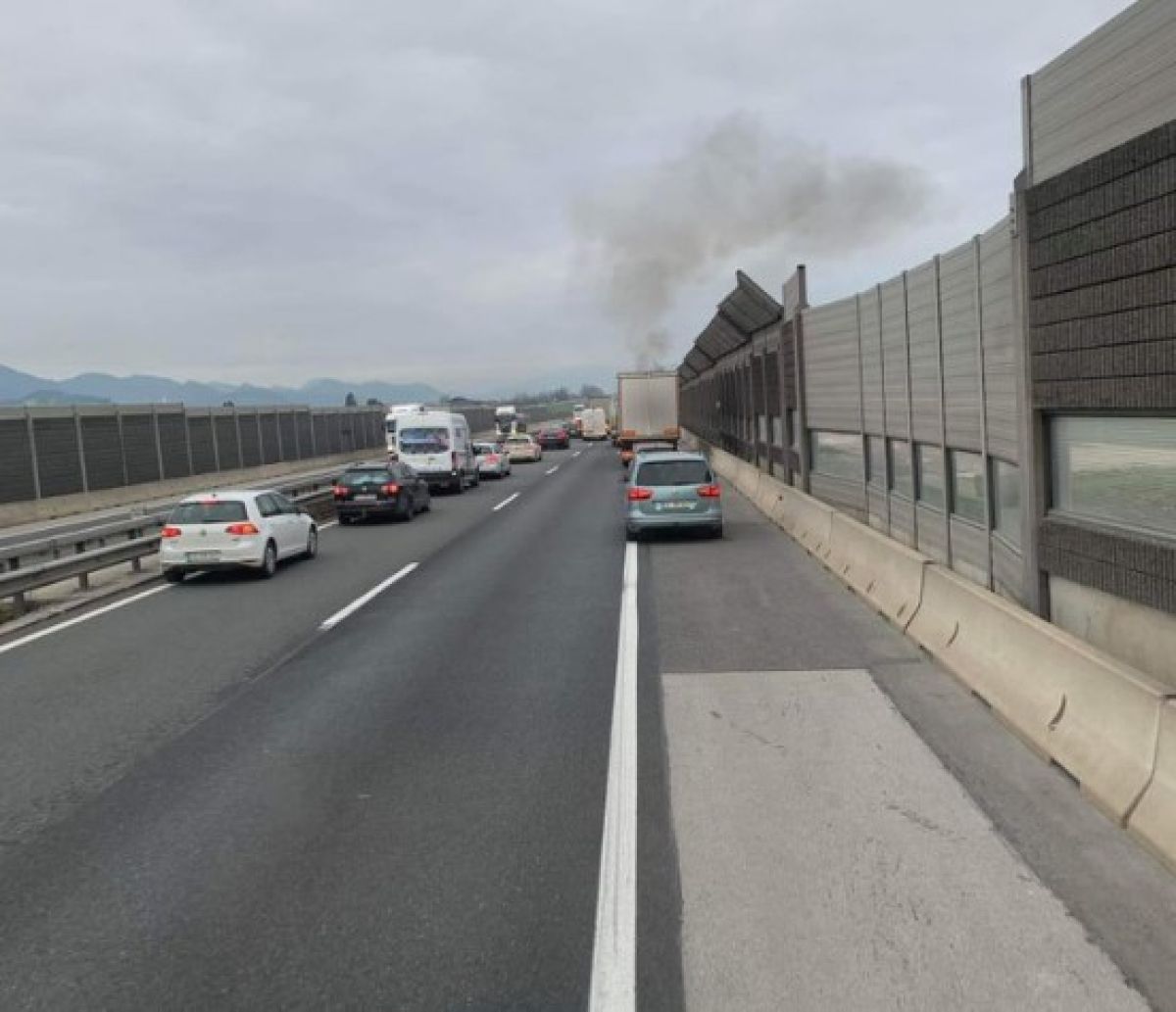 V času jutranje konice je na štajerski avtocesti zagorelo vozilo.