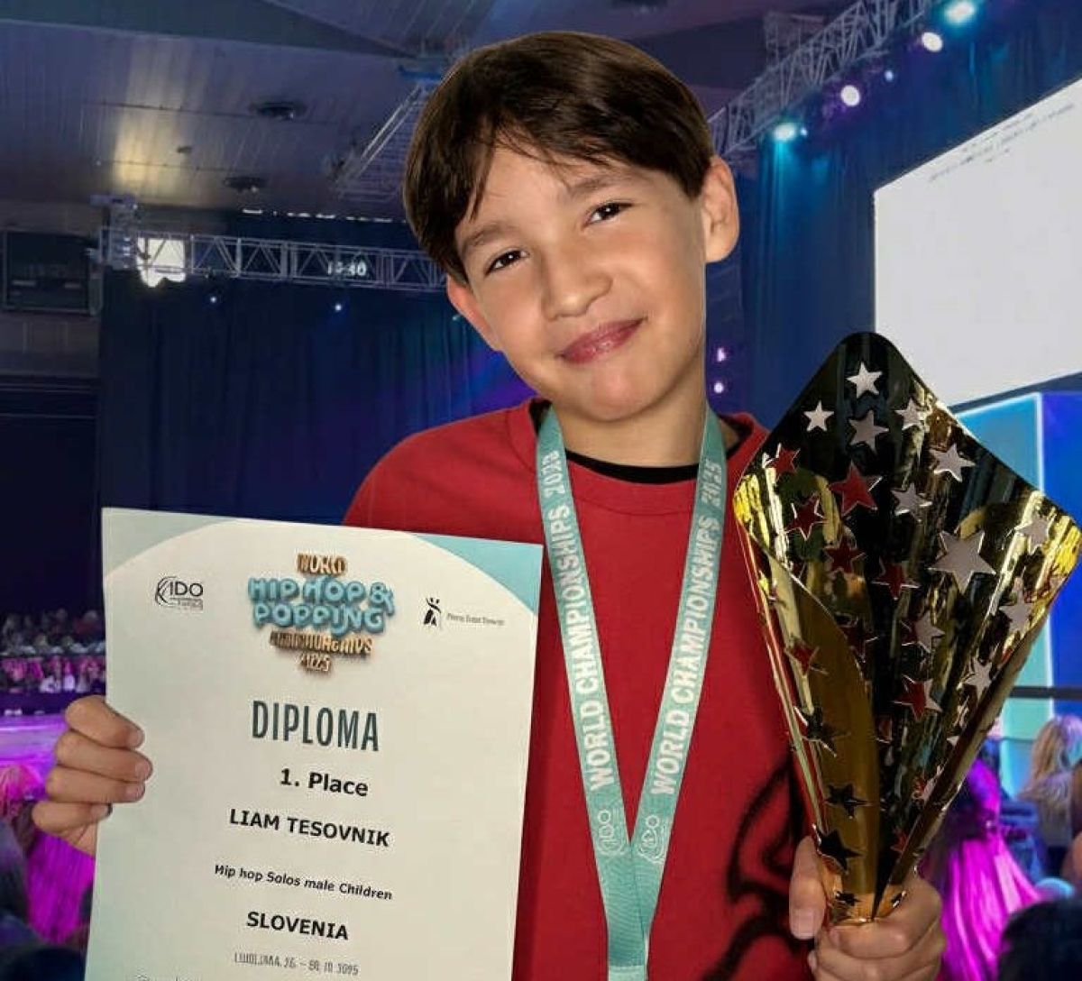 Na svetovnem prvenstvu IDO v hip hopu je v kategoriji solo dečki zmagal 11-letni Liam Tesovnik iz Mozirja in osvojil naslov svetovnega prvaka.