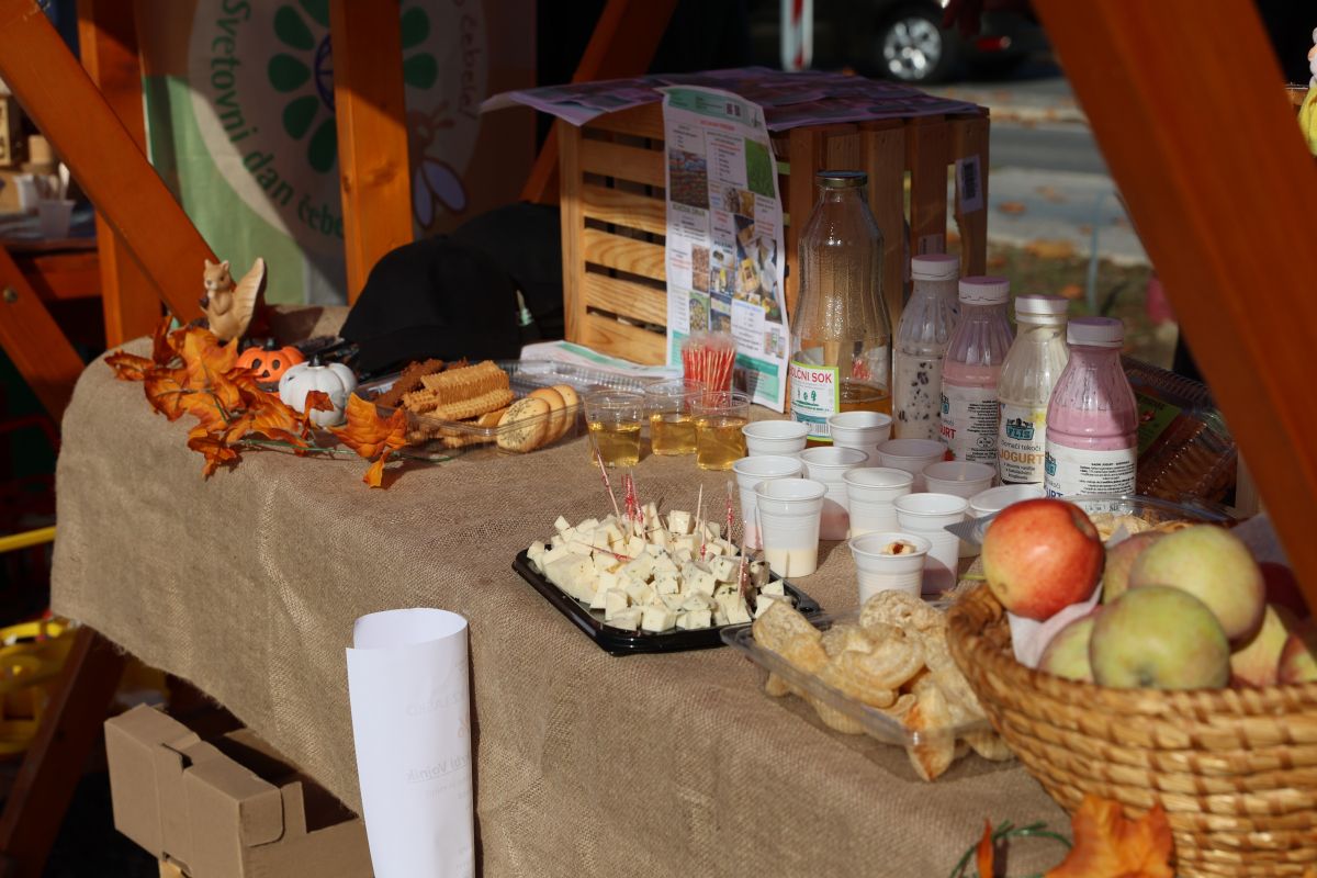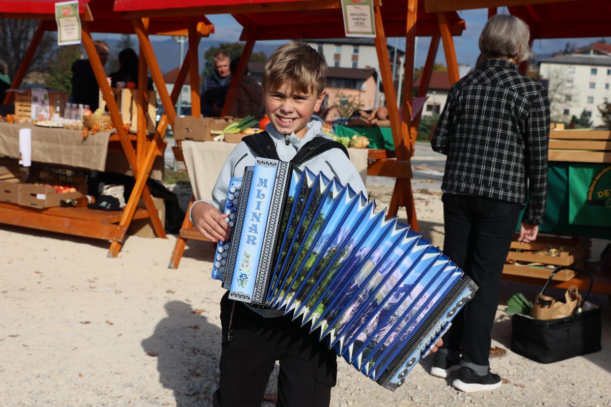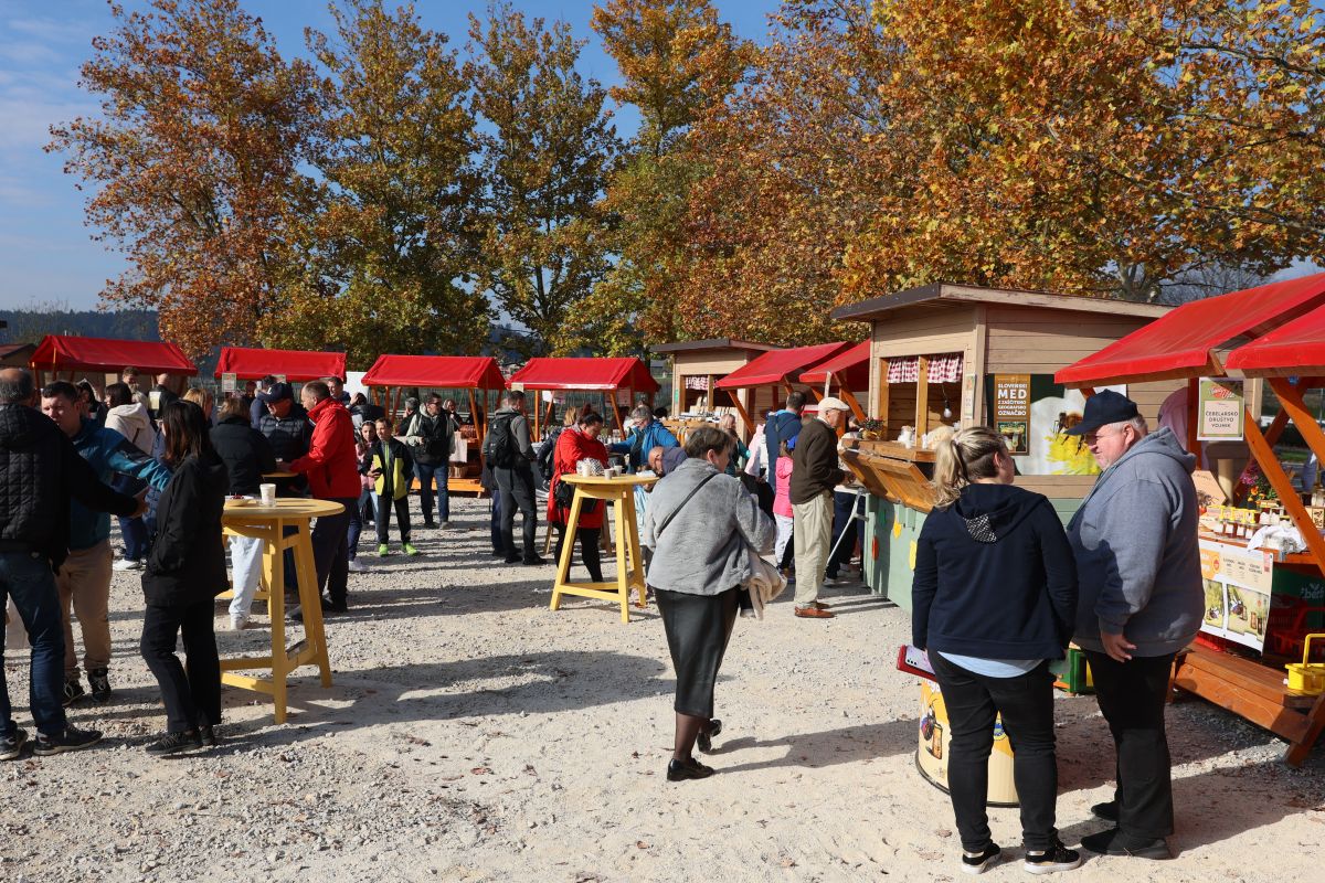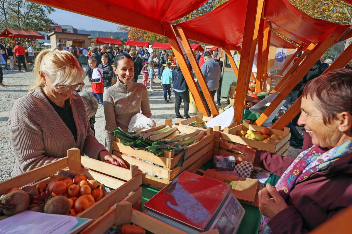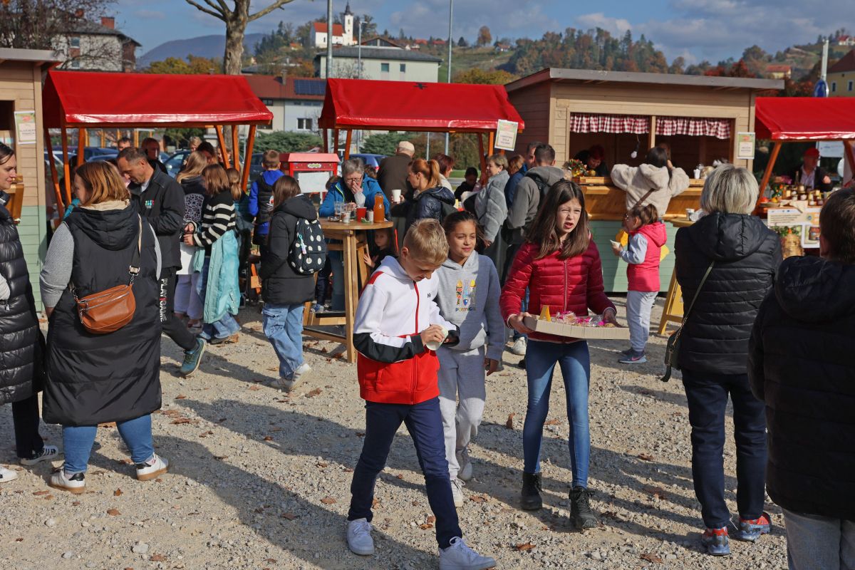 Tržnica je dišala po pečenem kostanju in domačih dobrotah. Stojnice so ponujale suhomesne izdelke, sire, jogurte, piškote, domačo kislo juho, čaje, zelišča, naravna mazila in kreme, med in medene izdelke, žganje, svežo zelenjavo, mojstrska ročna dela, domač kruh, potico, svež kostanj in številne druge dobrote izpod rok marljivih ponudnikov. Topli napitki so ogreli obiskovalce, nastopi kulturnih ustvarjalcev pa njihova srca. S pesmijo in z nasmehi so navdušili Taščice iz KUD Franceta Prešerna Vojnik ter mlad harmonikar Maj Vrečar.