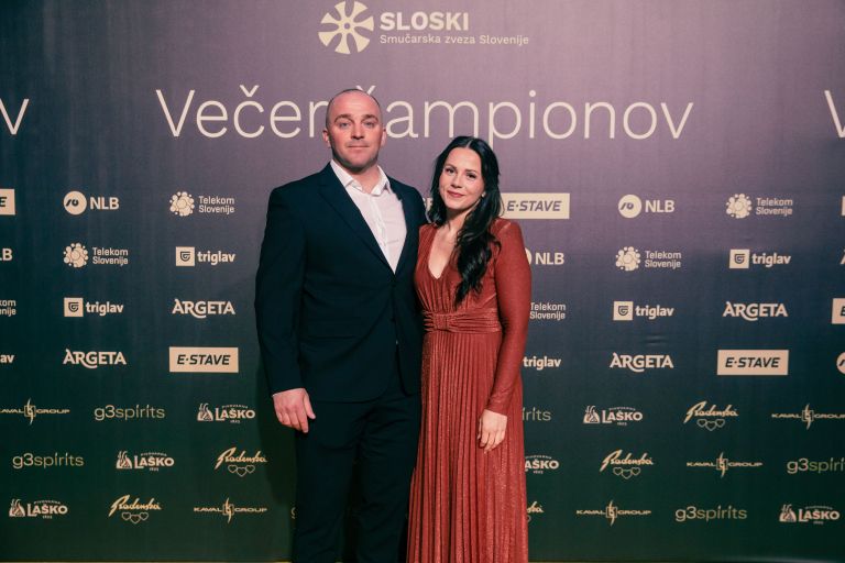 Zimski športniki v spremstvu svojih »boljših polovic«. Anamaria Lampič in Boštjan Klavžar sta preprosto sijala.