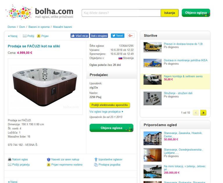 Simpatično poimenovanje je postalo spletni hit, ki je svoje mesto našlo tudi v malih oglasih. Na priljubljenem oglasnem portalu se je namreč pojavil oglas za masažni bazen oziroma 'fačuzi', ki je na voljo za 4.999 eur. Uporabnik zig33x je pod prodajalko navedel Vesno Š. in poskrbel za hihitanje uporabnikov portala.