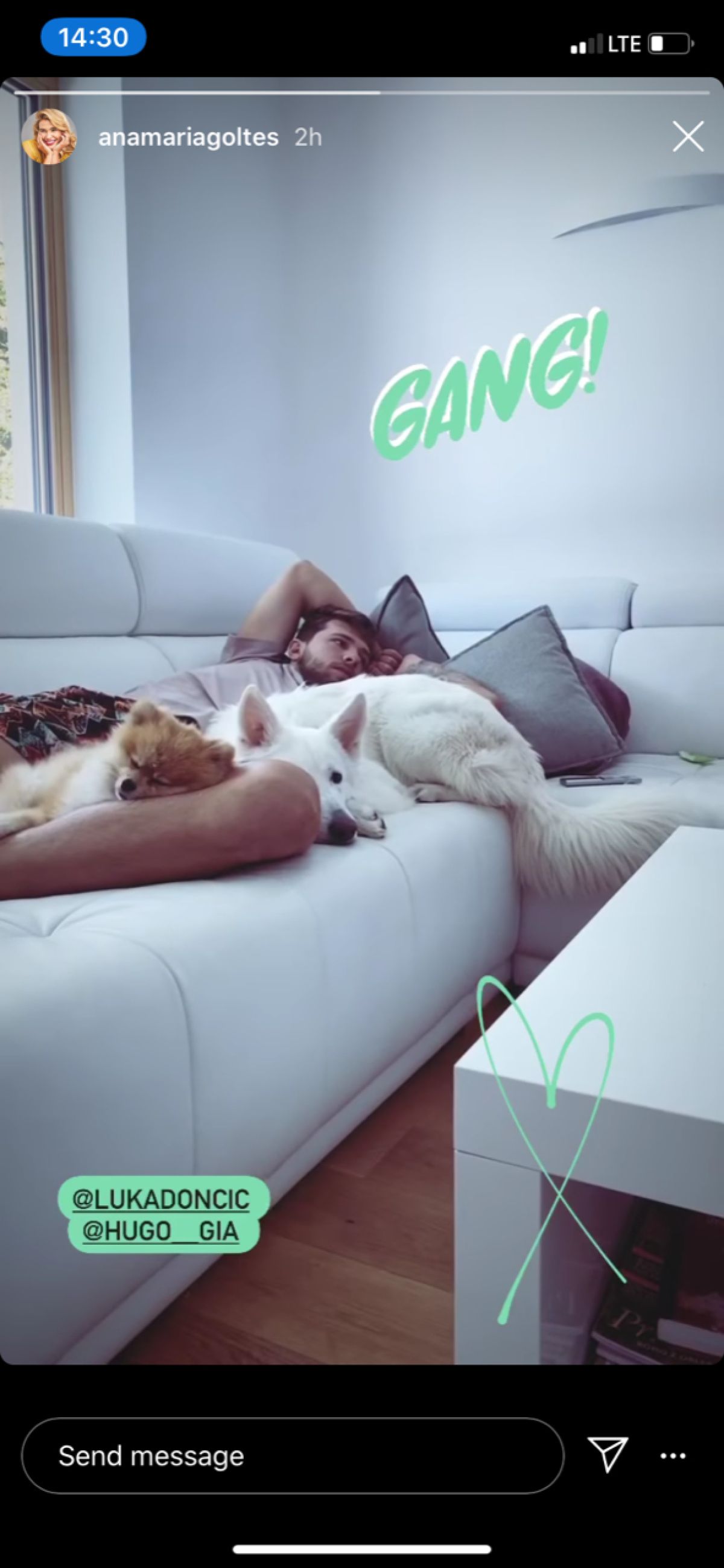 Anamaria je namreč na družbenem omrežju objavila Lukovo fotografijo, na kateri košarkar na kavču uživa s pasjima prijateljema Hugom in Gio. Če je fotografija aktualna, to pomeni, da je Luka že v Sloveniji.