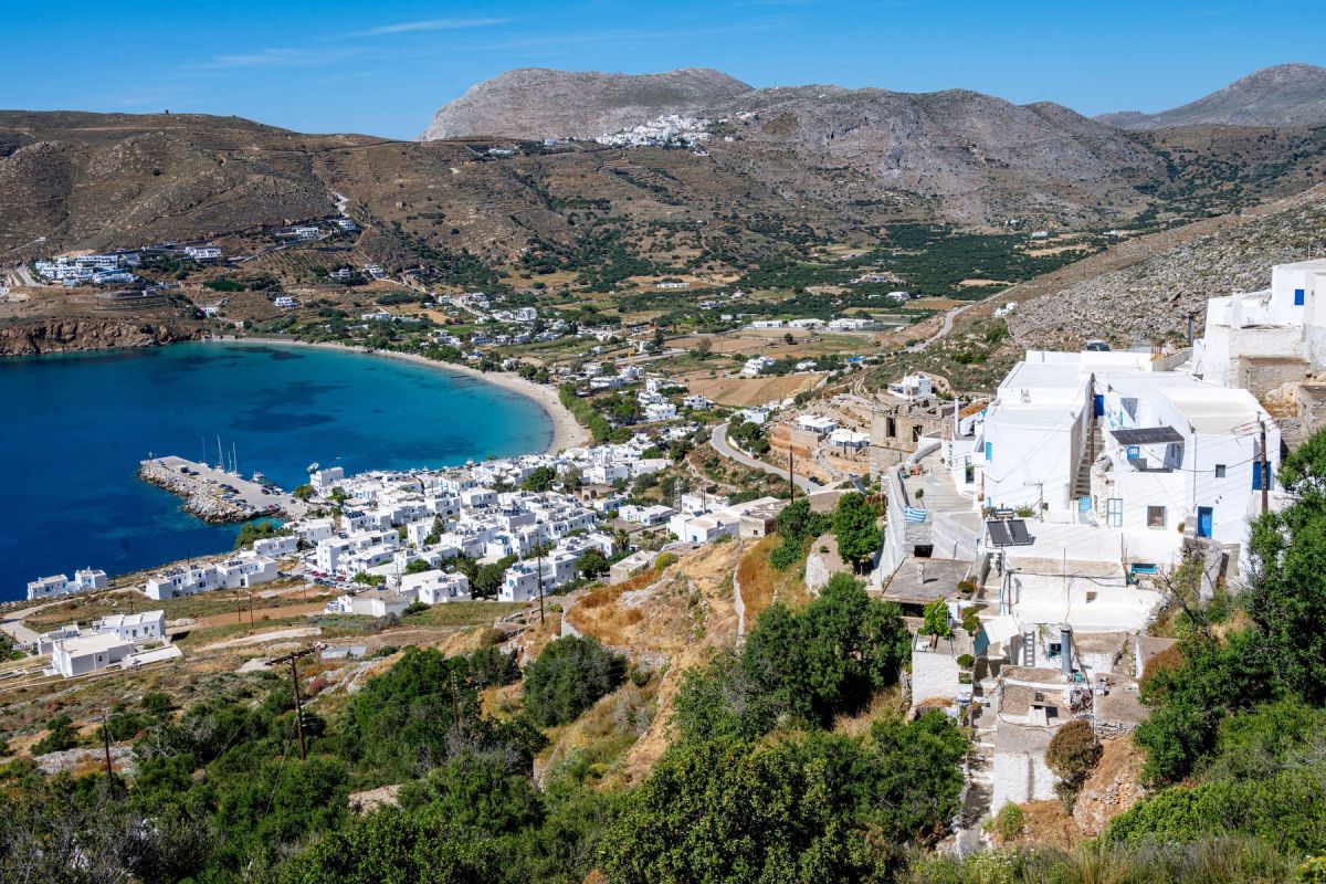 Amorgos je bolj surov, divji otok v vzhodnem delu Kikladov. Znan je predvsem po samostanu Hozoviotissa, ki se drži pečine nad morjem – eden najimpresivnejših razgledov v Grčiji. Otok je pravi raj za pohodnike, saj ga prepredajo stare kamnite poti med vasmi in zalivi. Chora, glavno mesto, ohranja tradicionalno arhitekturo, medtem ko so pristanišči Katapola in Aegiali odlična izhodišča za izlete po otoku. Plaže so večinoma naravne – Agia Anna, znana iz filma »Velika modrina«, ima skalnato obalo in kristalno vodo, Mouros je priljubljena zaradi jam in senc, Aegiali pa ponuja bolj urejen dostop. Na Amorgosu boste našli avtentično vzdušje, manj gneče in domače taverne z odlično hrano.