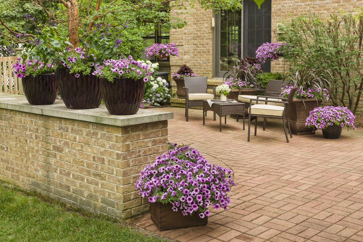 Nadvse lep učinek na vrtu lahko dosežemo tudi, če s cvetočimi oblački uokvirimo prostor, v katerem se najpogosteje družimo. Če se odločimo za tako rešitev, je cvetočih okrasnih loncev na enem mestu veliko, zato je pomembno, da so zasaditve umirjene in predvsem usklajene.