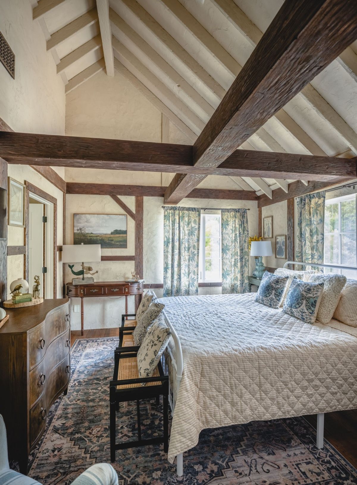 Lucy je uporabila pravi kamen, ročno obdelane lesene tramove, rustikalne stenske omete, tkanine v vintage stilu in manjše detajle, ki ustvarjajo vtis, da je glavna igralka pravkar stopila ven po skodelico kakava. Čeprav je bil originalni filmski dekor videti malce zastarelo in neskladno, je bila njegova replika precej draga – celo reprodukcijam kosov pohištva so hitro narasle vrednosti, saj so živele v duhu filma.