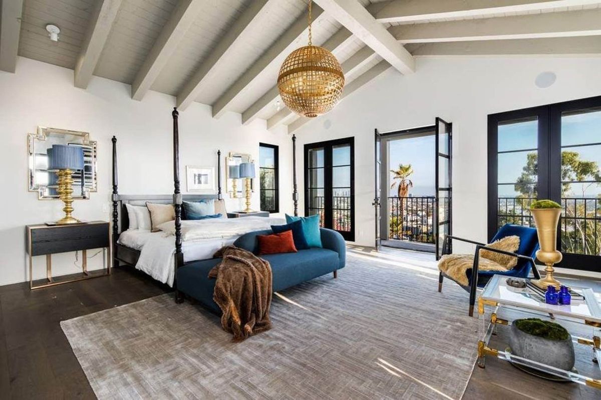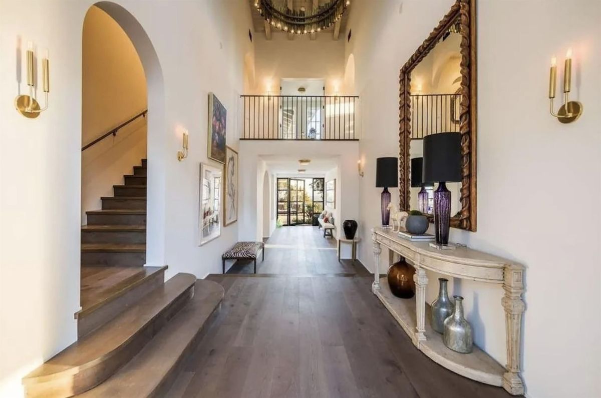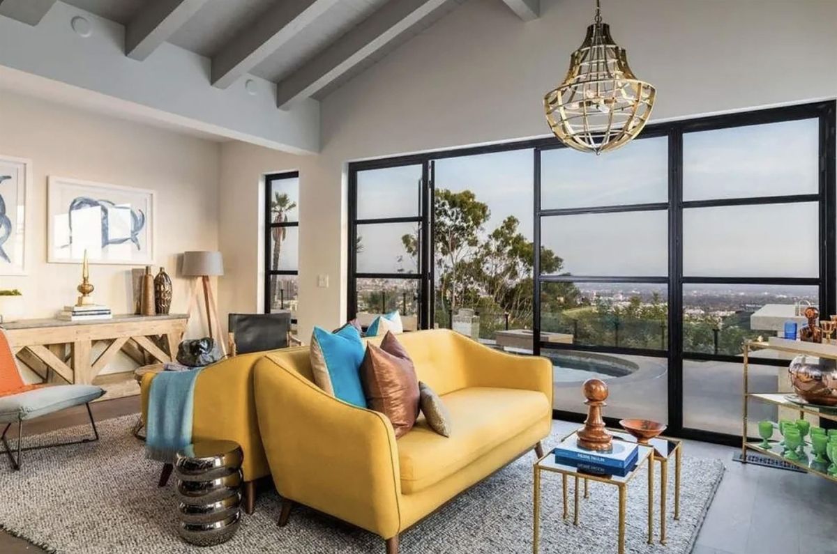 Ena največjih prednosti hiše so razgledi, ki se odpirajo proti središču Los Angelesa in vse do Tihega oceana. Velika panoramska okna in premišljena razporeditev prostorov omogočajo obilico naravne svetlobe ter občutek povezanosti z zunanjim okoljem. V notranjosti obiskovalca pričaka prostoren vhodni prostor z visokimi stropi in lesenimi tramovi, ki se preliva v glavne bivalne prostore. Oboki povezujejo posamezne dele hiše, kar ustvarja občutek odprtosti in elegance.