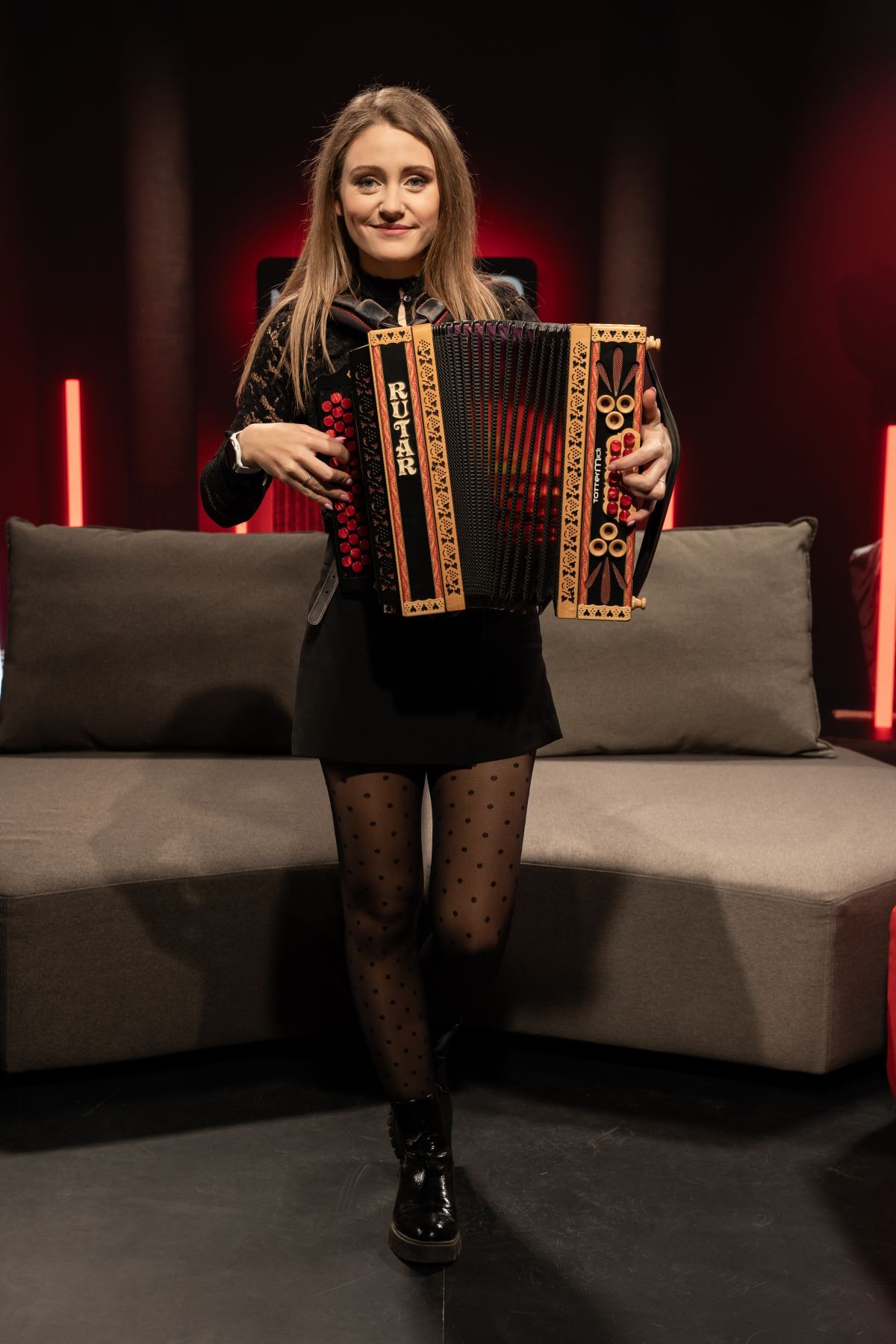 Vedno nasmejana Tjaša Božič, ki občinstvo navdušuje s petjem in harmoniko, bo po novem vodila tudi Glasbene želje na TV Veseljak Golica.
