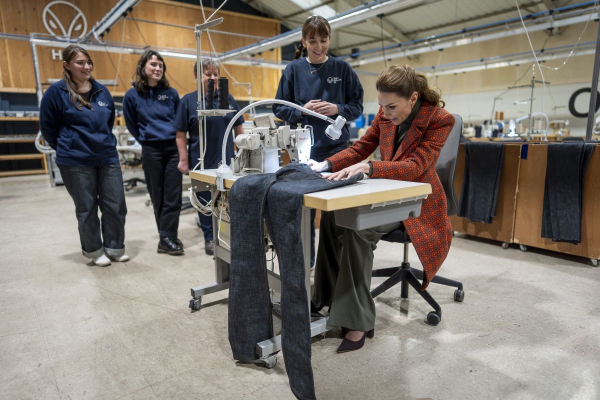 Valižanska princesa je obiskala znamenito tovarno volne Melin Tregwynt, ki slovi po ohranjanju tradicionalnega valižanskega tkanja z dvojno plastjo. Gre za tehniko izdelave debelih, dvostranskih odej z obrnjenimi vzorci, pri čemer se znanje skrbno prenaša iz generacije v generacijo. Prav v tem okolju bogate dediščine je Kate Middleton izbrala videz, ki združuje spoštovanje tradicije in sodoben modni izraz. Oranžen plašč do kolen, s poudarjenimi rameni in diskretnim karirastim vzorcem, je deloval samozavestno, odločno in premišljeno.