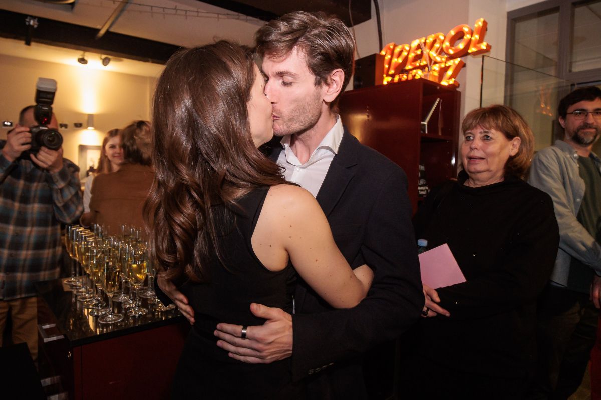 Med njimi je bil tudi igralec Robert Korošec, sicer dolgoletni partner igralke Nine Rakovec. Ob koncu predstave mu je Nina stekla v objem, Robert pa ji je čestital s poljubom.