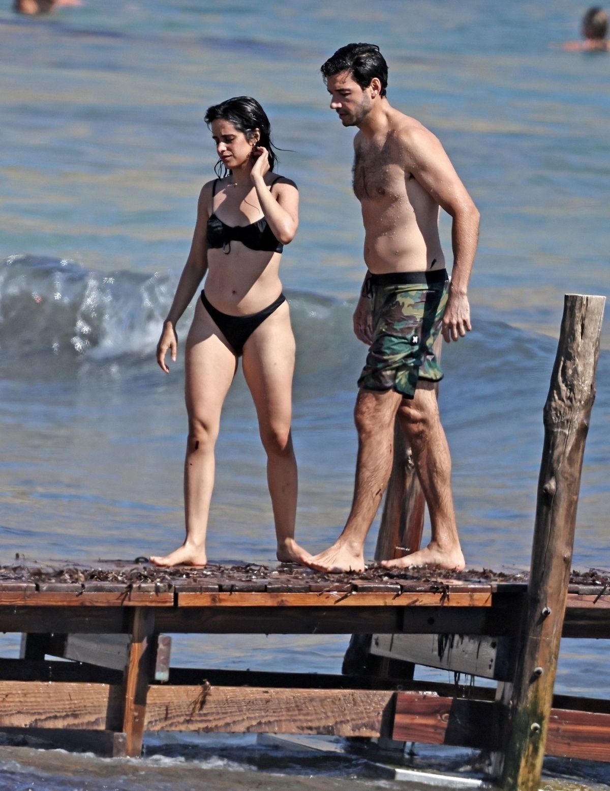 Camila je nosila črn bikini, ki je poudaril njeno zapeljivo postavo, poleg pa še nekaj zlatih dodatkov – ogrlico s križcem in majhne obročke. Henry, temnolasi milijarder, se je za plažo odločil za kopalne hlače s kamuflažnim vzorcem.