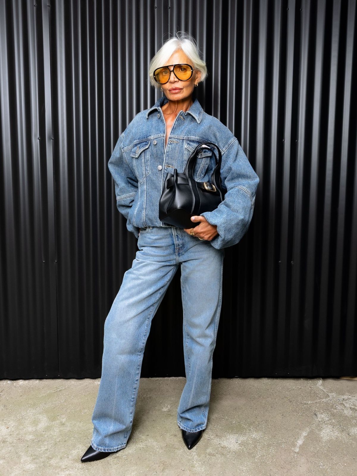 Zrelejše modne navdušenke tako dokazujejo, da svetel denim ni rezerviran le za mlajše generacije. Prav nasprotno, ob pravem kroju in premišljenem stiliranju lahko deluje še bolj elegantno kot temne različice.