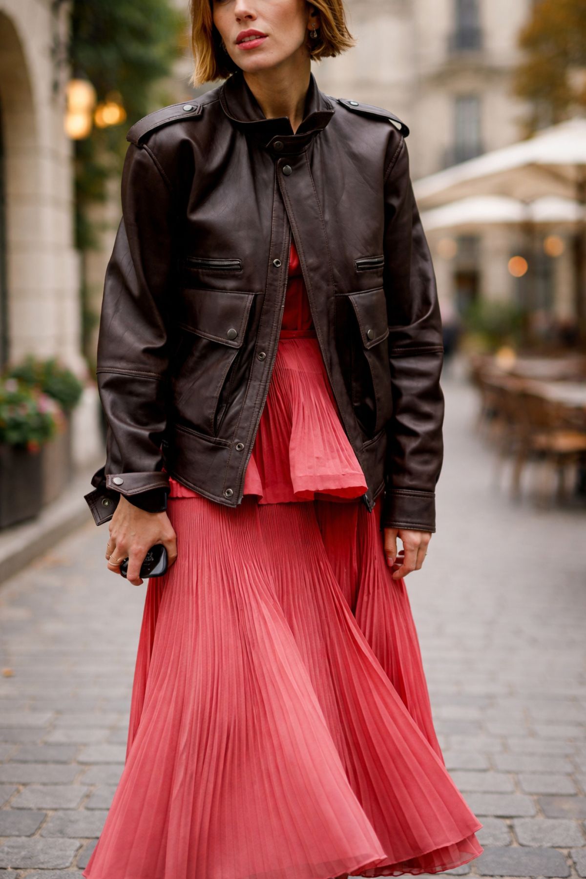 Danes jo modne navdušenke nosijo na sproščene kavbojke in belo majico za lahkoten mestni videz, prav tako pa odlično deluje v kombinaciji z ženstveno obleko ali midi krilom. Prav ta kontrast med robustnim usnjem in lahkotnimi materiali ustvarja zanimivo ravnovesje, ki deluje sodobno in premišljeno.