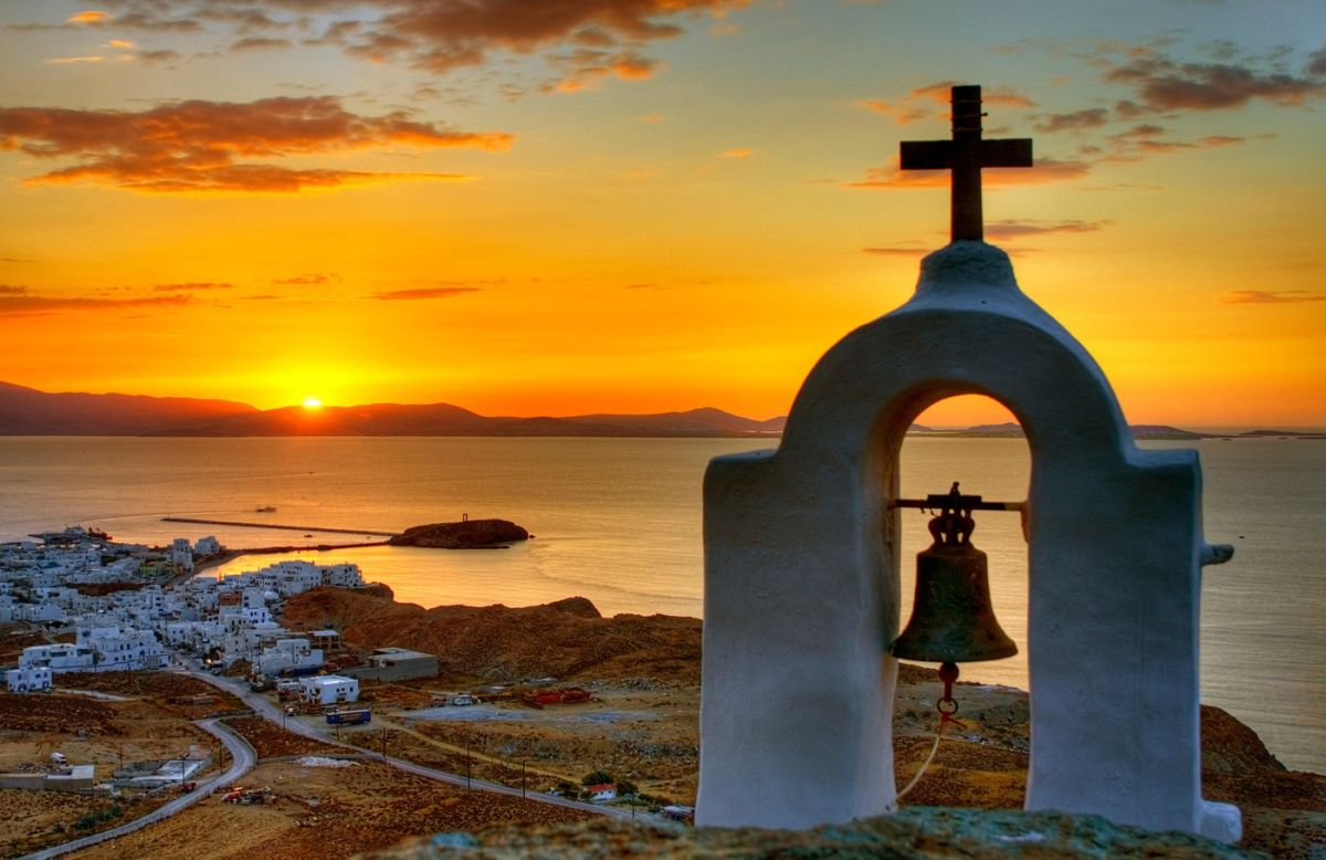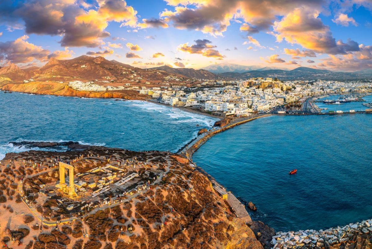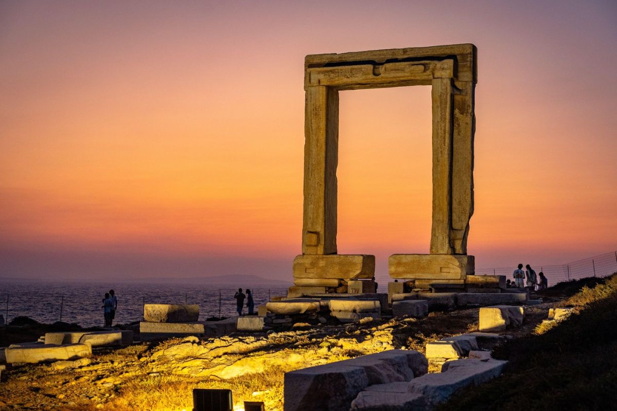 Ena najbolj prepoznavnih znamenitosti so monumentalna marmorna vrata Portara starodavnega templja Apolona, ki stojijo na majhnem otočku tik ob pristanišču. Ob sončnem zahodu ta arheološki ostanek ustvarja eno najbolj impresivnih panoram v Egejskem morju.