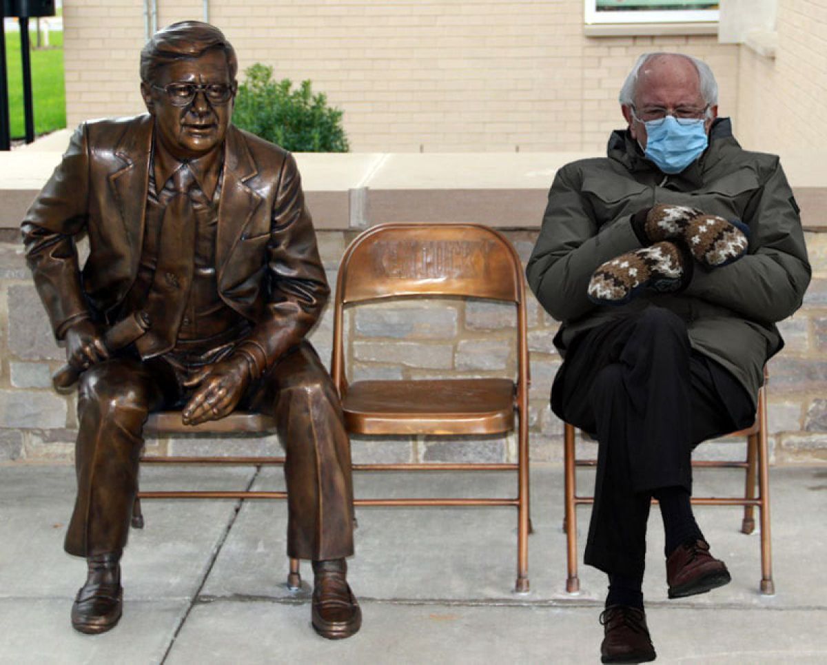 Fotografija ameriškega senatorja Bernieja Sandersa, ki v velikih pletenih rokavicah sedi na inavguraciji novega ameriškega predsednika Bidena, je postala vir zabave na internetu.