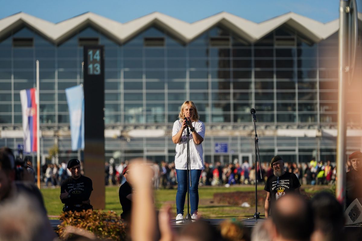 Oblečena v majico z napisom "Mama proti mašineriji" je želela stavkati neposredno pred parlamentom, a ji policija ni dovolila pristopa, saj je prostor pred poslopjem zasedlo šotorsko naselje Vučićevih podpornikov, ki so ga protestniki poimenovali "Ćacilend". Svoj protest je zato začela v neposredni bližini, kjer namerava ostati “do nadaljnjega”.
