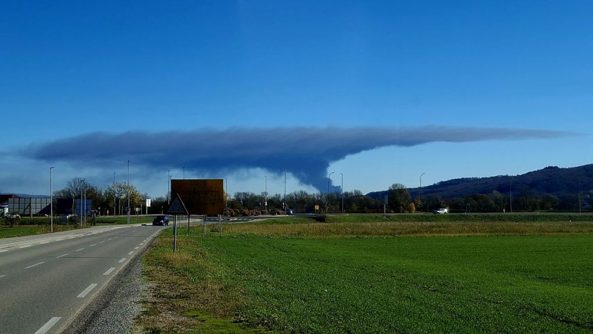 V Sveti Nedelji zagorelo skladišče pnevmatik, dim tudi v Slovenijo (foto)
