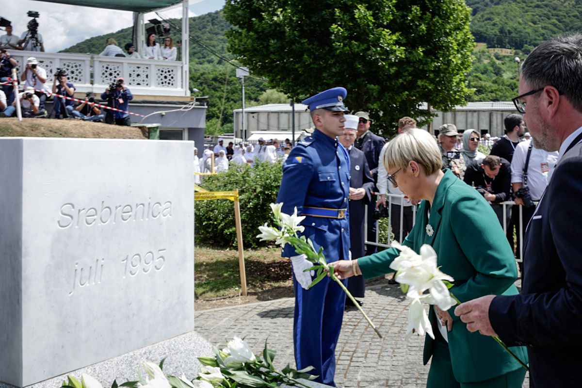 Ob udeležbi na komemoraciji je predsednica poudarila pomen ohranjanja zgodovinskega spomina na genocid v Srebrenici ter pomembno vlogo izobraževanja mladih: »Ko se molk spremeni v molitev in žalovanje postane dolžnost, tedaj razumemo, da ne smemo nikoli dovoliti, da zgodovina utone v pozabo. Tudi po treh desetletjih žal še vedno slišimo zanikanja genocida in poveličevanja vojnih zločincev. Tega ne moremo in ne smemo sprejeti. Še posebej ne v Evropi.« Opozorila je tudi, da žrtve genocida ne smejo ostati le statistika ali zgodovinska opomba: »Na strani resnice stojijo žrtve. In na njihovi strani bomo vedno tudi mi – ker smo Evropejci. In ker smo ljudje.« Izrazila je tudi spoštovanje do mater Srebrenice, ki po njenih besedah »že tri desetletja opominjajo svet, da se resnica ne more in ne sme skriti pod preprogo zgodovine.«
