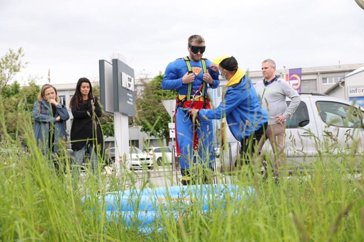 »Ti boš skočil bungee jumping v kostumu superheroja. Imaš super moč, prepustil se boš in boš poletel. Enkrat moraš tudi ti nekaj takega narediti, saj zmoreš. Ljudje bodo še bolj podprli to akcijo. Naredil boš nekaj za to, da bo akcija še bolj plemenita, ljudje bodo leteli s tabo,« je še dejal Deželak in Denisa »poslal« na Solkanski most.