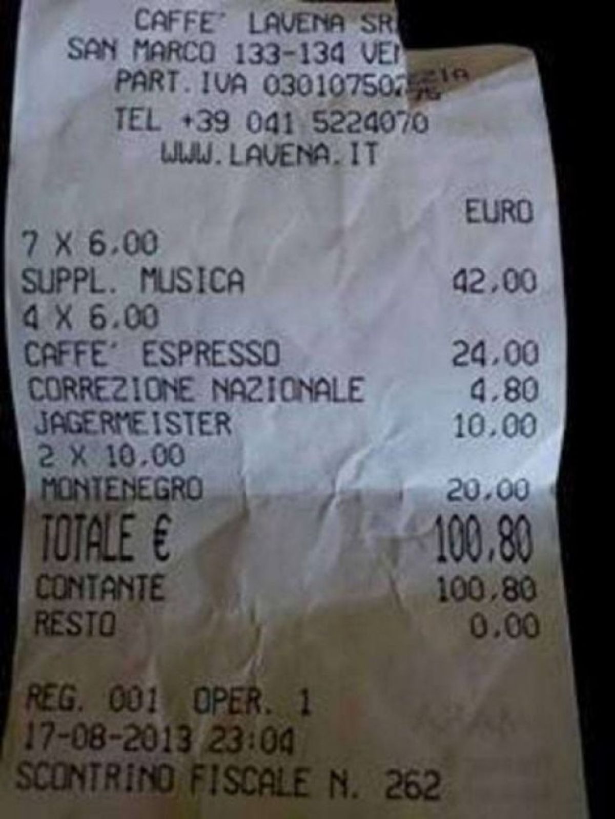 Lokal, ki se je tako znašel v središču pozornosti, je znameniti Lavena. Na zgražanje javnosti so se hitro odzvali in v izjavi za javnost zapisali: "Vse stranke imajo na voljo cenik, na katerem so jasno napisane vse cene, naveden je tudi dodatek za živo glasbo." Ni kaj, pustolovščina po Benetkah in popoldanska kava vas lahko kar lepo udarita po žepu.