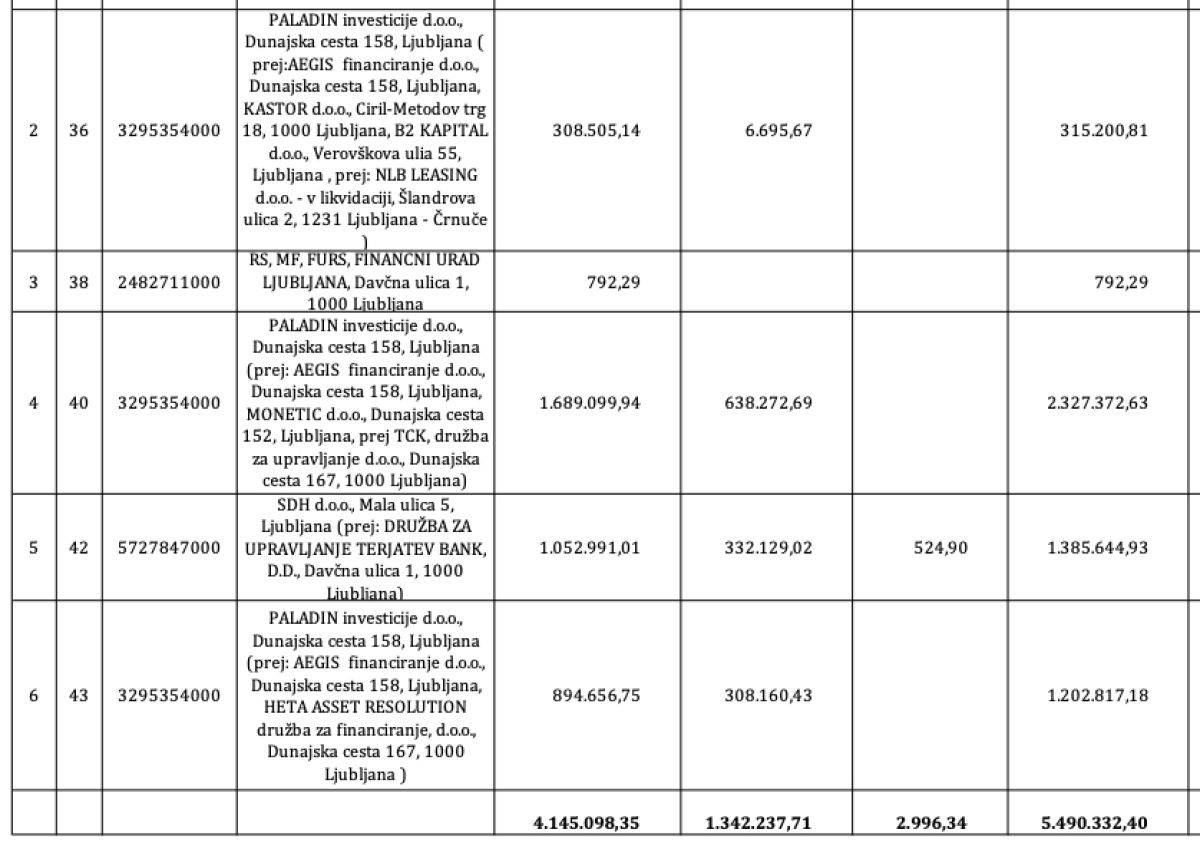 Skoraj štiri milijone evrov oziroma 70 odstotkov njihovih terjatev je tako odkupilo podjetje Aegis financiranje, pozneje pa jih je preneslo na podjetje Paladin. Obe sta v lasti Jana Beca, življenjskega sopotnika sestrične Damijana Jankovića, ki je imel ključno vlogo tudi pri reševanju poslovnega imperija Electa in drugega premoženja v lasti družine.