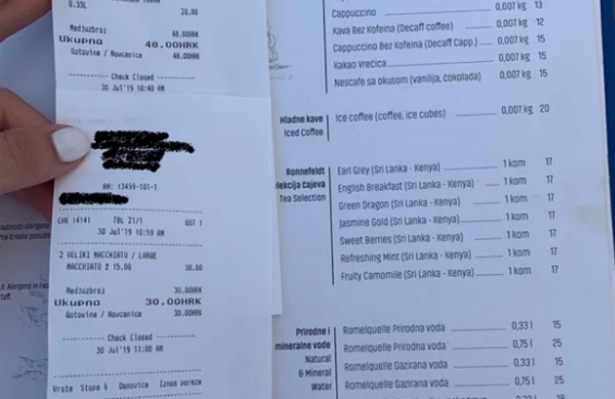 FOTO: Na hrvaški obali na ceniku eno, na računu drugo