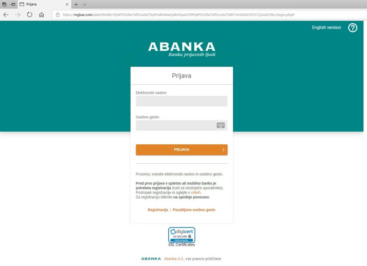Nacionalni odzivni center za obravnavo incidentov s področja varnosti elektronskih omrežij SI-CERT je na twitterju objavil, da so danes prejeli več prijav glede poskusa kraje uporabniškega imena in gesla za dostop do Abanet spletnega bančništva.