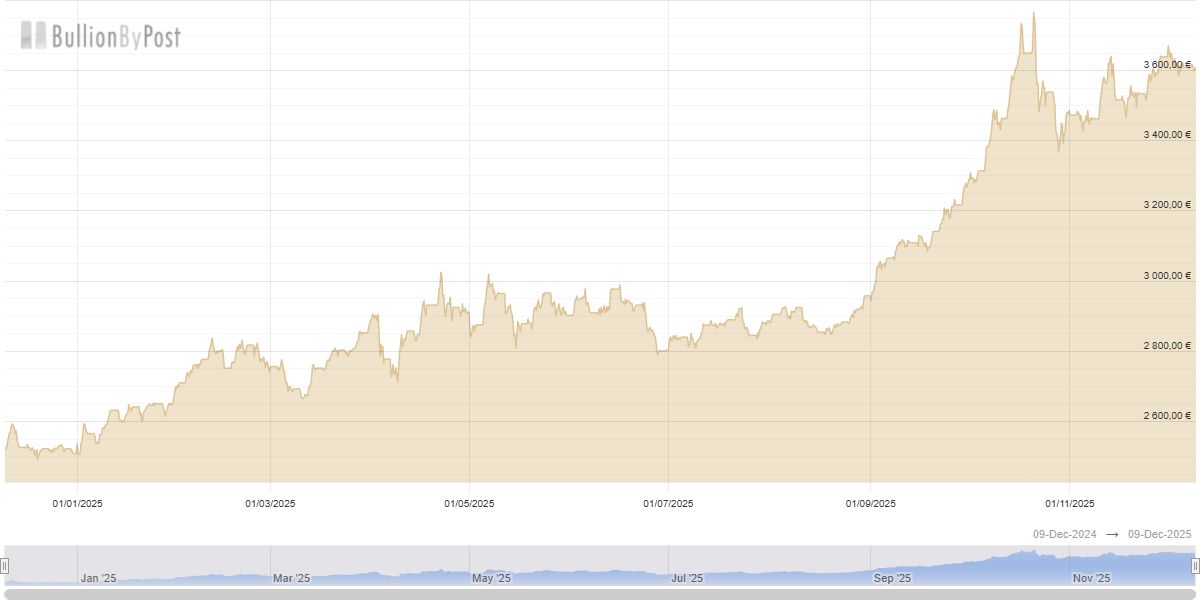 Zlato je letos beležilo zgodovinsko ras 60odstotno ras. K temu so prispevali geopolitični dejavniki, znižanje obrestnih mer in povečano povpraševanje centralnih bank.