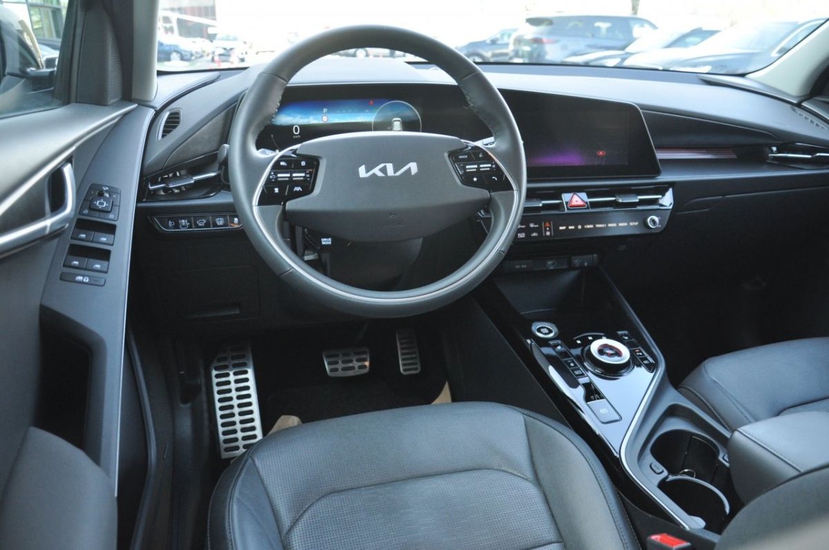 Potniška kabina je bila prav tako deležna popolne prenove. Voznikovo delovno okolje ima prepoznavno zasnovo dveh zaslonov združenih v eno komponento, tako eden služi kot prikaz vseh pomembnejših potovalnih podatkov, drugi pa je v vlogi osrednjega infozabavnega vmesnika. Nova je oblika volana, upravljanje klimatske naprave je ločeno od zaslona, klasično prestavno ročico je zamenjal vrtljivi gumb, novi in tanjši so tudi sedeži, s čimer so pridobili nekaj uporabnih milimetrov za kolena potnikov na zadnji klopi. Omeniti velja tudi to, da je vzglavnik sedežev oblikovan na način, da nanj lahko z druge strani obesimo jakno ali vrečko iz trgovine. Glede na pogonski sklop je odvisna velikost prtljažnika. Pri priključnemu hibridu je prostornina najmanjša, le 348 litrov, 451 litrov ponuja klasični hibrid, še 24 litrov več pa jih ima elektro gnani niro. Slednjemu so pod sprednjim pokrovom uredili še dodaten 20-litrski odlagalni prostor z največjo dovoljeno težo 10 kilogramov.