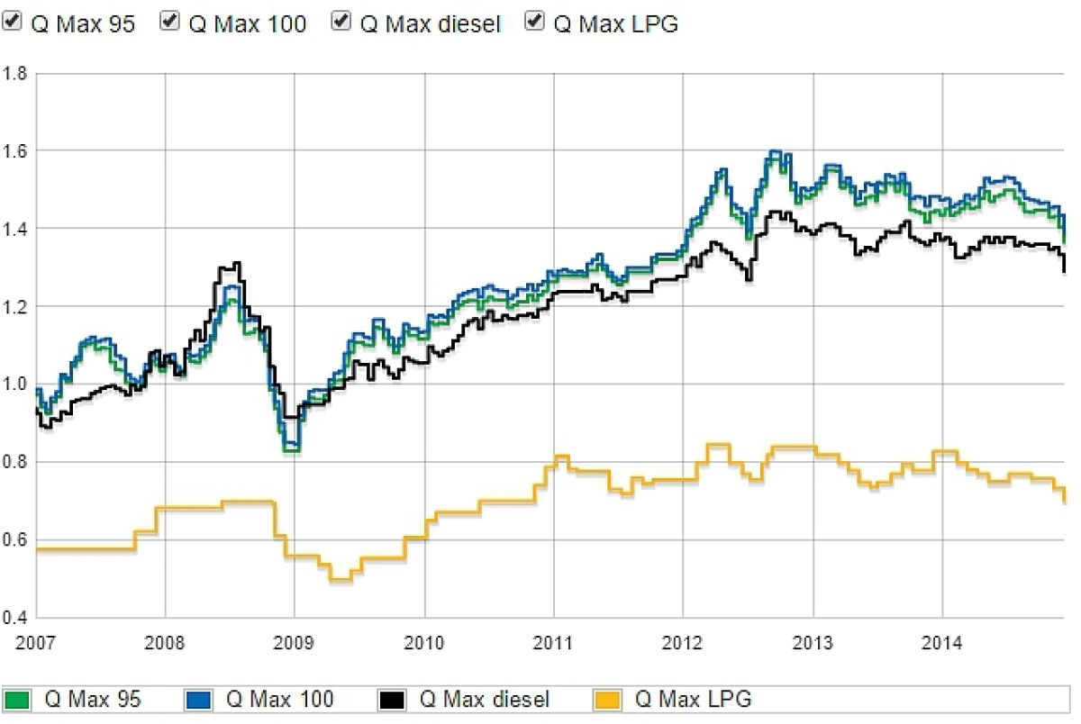 Neosvinčeni 95-oktanski bencin se bo tako pocenil za sedem centov na 1,292 evra za liter, medtem ko se bo cena 100-oktanskega bencina in dizelskega goriva znižala za 6,1 centa na 1,328 oz. 1,225 evra za liter. Najbolj se bo pocenilo kurilno olje, za liter tega bo treba od torka dalje odšteti 0,880 evra, kar je 7,1 centa manj kot doslej.