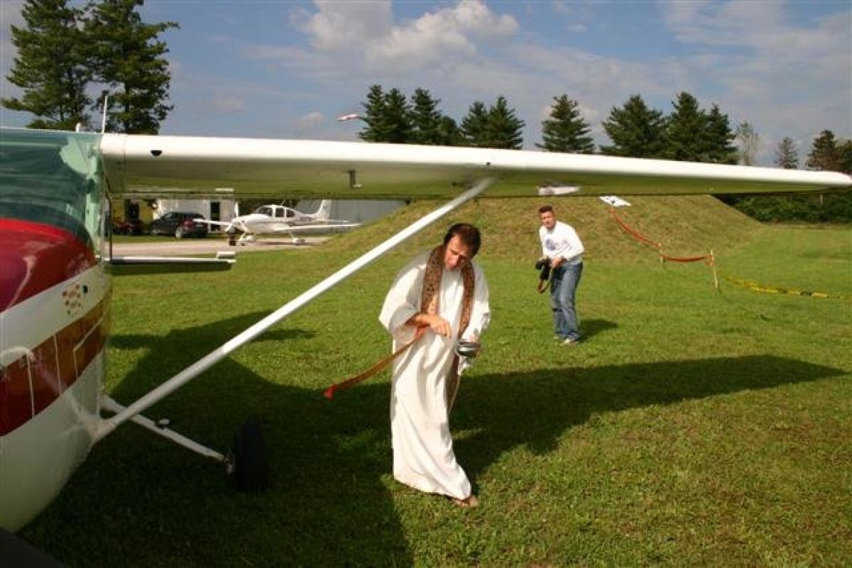 Eden od vrhuncev včerajšnjega dneva odprtih vrat je bil krst letal. Obred, namenjen cessni 150 in cessni 172, sta opravila Janez Žakelj in Janez Turinek, prvi župnik iz Cerkelj ob Krki in drugi župnik iz Artič. Jure Tomše je izvedel akrobatske lete, padalska šola Parass pa je v zadnji tretjini včerajšnje prireditve izvedla padalske skoke, in to kljub takrat še vedno precej močnemu vetru.
