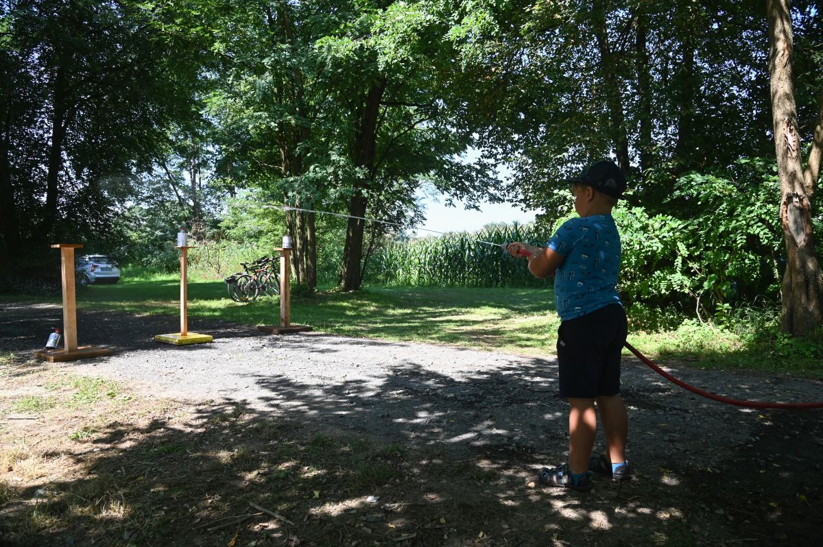 Gasilska zveza Tišina je na Petanjcih pripravila prvi gasilski tabor mladih. Predsednik zveze Vinko Gajšt pravi, da so se za organizacijo tabora odločili, ker želijo pridobiti gasilski podmladek. Interes se je pokazal, saj je v aktivnostih sodelovalo okoli 50 mladih, starih med 6 in 16 let. Razdeljeni so v pet skupin, primerno letom pa so organizatorji zastavili tudi dejavnosti. Najmlajši, ki niso imeli predznanja, so na primer spoznavali gasilsko opremo, se preizkušali v vajah z vedrovkami. Kajti gasilskih vaj in tekmovanj letos ni bilo, zato je to primeren način, da se otroci s tem spoznajo. Poleg tega so se učili gasilskega bontona in razvrščanja. V sredo so se vsi skupaj udeležili spusta po reki Muri, od Petanjcev do Veržeja, sicer pa so tekmovali tudi v paintballu, lokostrelstvu, igrah z žogo. Posebno doživetje je bilo tudi kuhanje golaža na odprtem ognju. Letošnji tabor sigurno ni bil zadnji, zaključi Gajšt. Fotografije Vanesa Jaušovec.