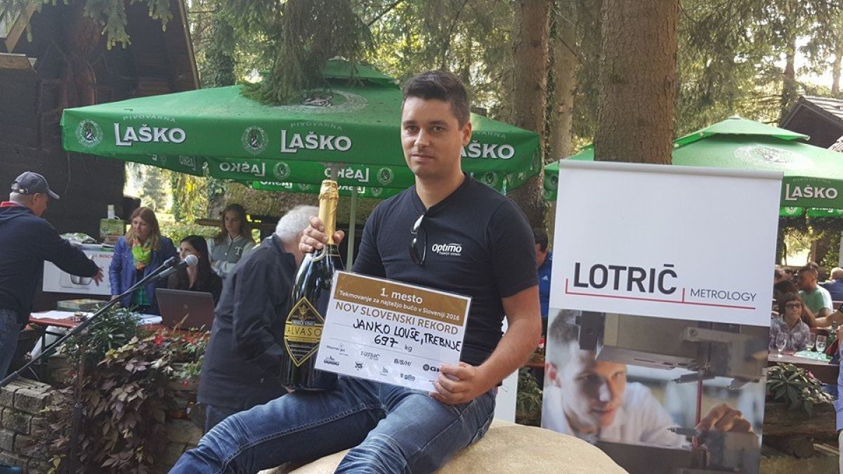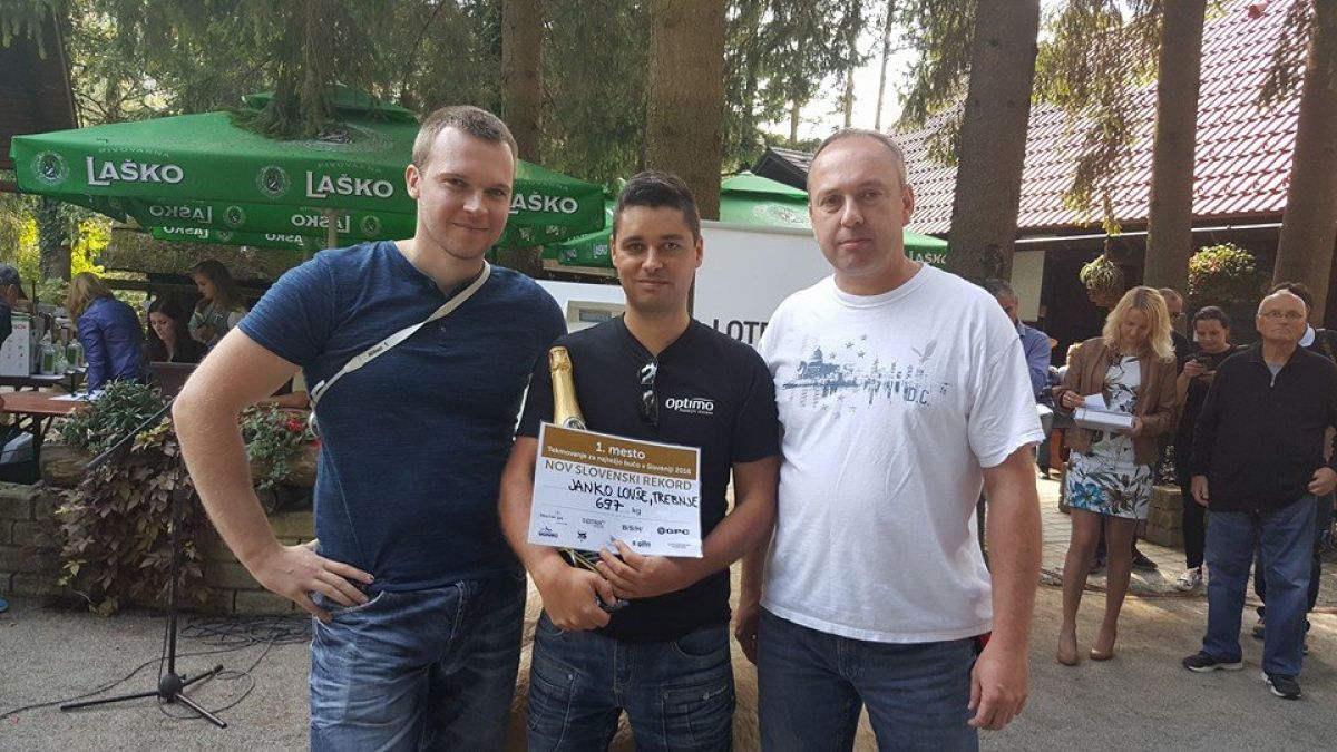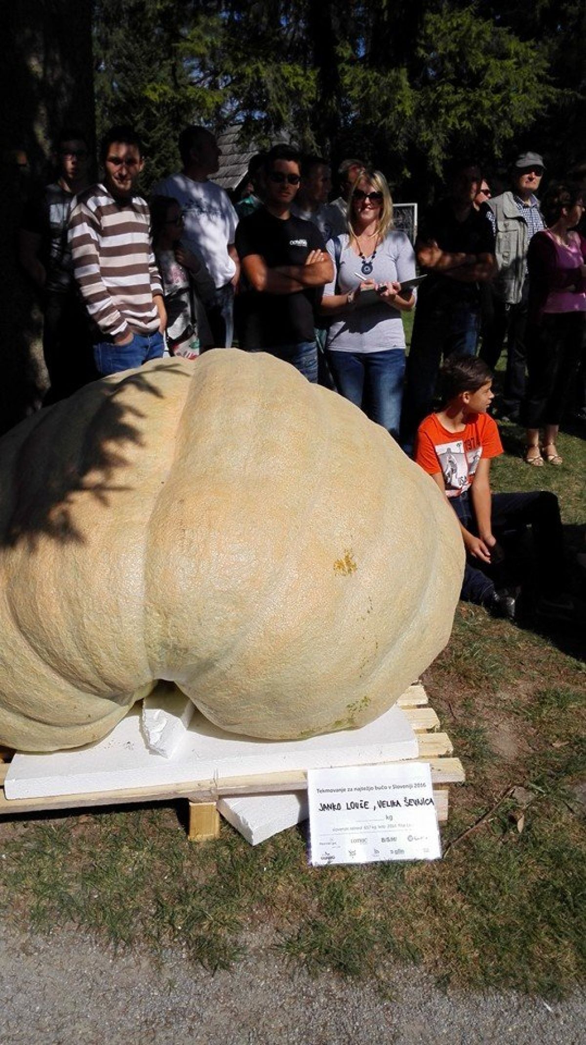 Kot smo ugibali že pred dnevi, tako se je danes zgodilo: buča velikanka Janka Lovšeta z Velike Ševnice pri Trebnjem je danes na 6. državnem prvenstvu za najtežjo bučo v državi v Mozirskem gaju pometla s konkurenco in s 697 kilogrami postavila nov slovenski rekord. Prejšnji rekord je bil 657 kilogramov, in sicer ga leta 2014 postavil Jankov sin Filip Lovše (ne bomo posebej omenjali, kdo je vzgojil in "zredil" tudi tisto bučo).
