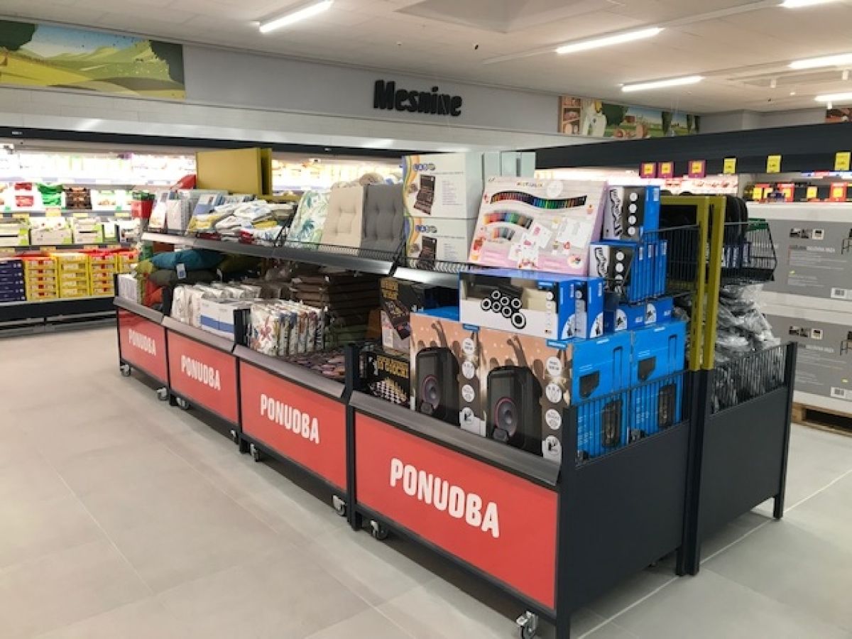 Nova trgovina še posebej izstopa z novo, osveženo, moderno zunanjo in notranjo podobo, kateri sledi tudi pregledna ureditev trgovine, s skrbno urejenimi policami in kupcu prijazna.