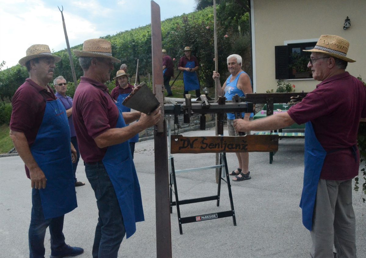 V vinski gorici Kamenško nad Krmeljem je več odličnih vinogradnikov, saj je Društvo vinogradnikov Šentjanž pretekli petek tam že petič postavljalo društveni klopotec svojim članom, ki so pridelali najboljši cviček na ocenjevanju ob Tednu cvička.