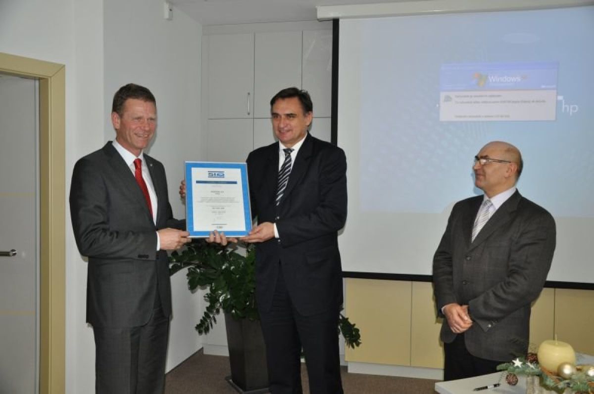 Certifikat sta prevzela predsednik uprave družbe Kostak Božidar Resnik in predstavnik vodstva za sisteme vodenja v Kostaku Željko Horvat.