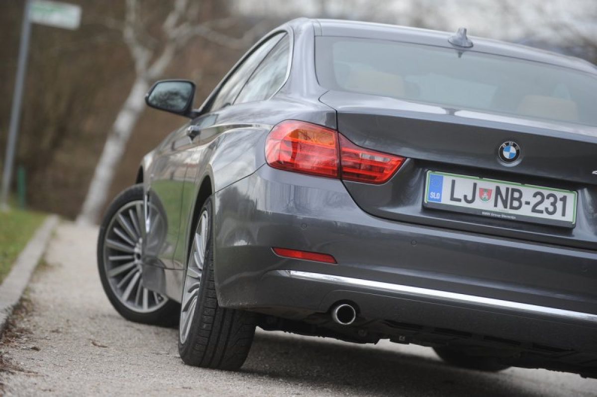 Za ljubitelje BMW-jevih vozil je dilema velika. Zakaj izbrati štirico namesto trojke? V osnovi se štirica kupe niti ne razlikuje veliko od trojke v limuzinski izvedbi. Kot že omenjeno je štirica nekoliko daljša, medosna razdalja z 2.810 mm pa je enaka pri obeh. Bosta pa potnika, ki bosta želela sedeti na zadnji klopi, morala biti malo bolj gibčna, predvsem pri izstopu iz vozila. Njuni glavi bosta nekoliko bližje stropu, kot bi bili v trojki. A sedenje in počutje sta temu navkljub premium. Prostora za noge je dovolj, prav tako sta sedeža izdatno široka in dobro oblazinjena. V testnem vozilu je za odlično splošno vzdušje poskrbelo tudi rjavo usnje. Tale zapis smo začeli na zadnji klopi, čeprav je bistvo spredaj. A preden opišemo občutke voznika, se vendarle najprej pomudimo pri zunanjosti.