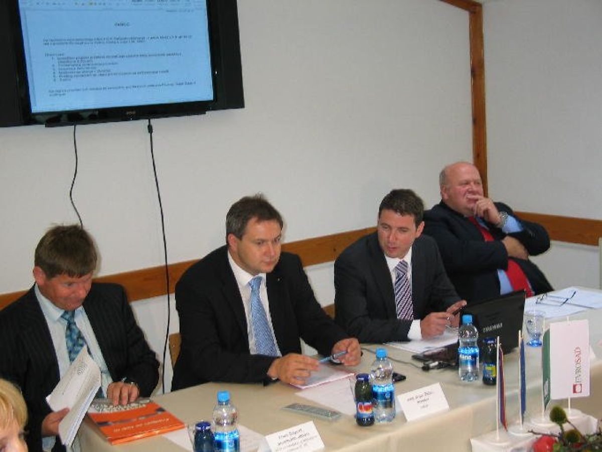 Že zjutraj ob 8. uri se je minister s sodelavci sestal s predstavniki javnih služb, ki pokrivajo področje ministrstva: Veterinarske uprave, Zavoda za gozdove, inšpekcije, Kmetijsko-gozdarskega zavoda in upravne enote, pa tudi s predstavniki krške občine. Minister je predstavil predlog zakona o kmetijskih zemljiščih, ki je od včeraj v javni obravnavi ter predvidene ukrepe za varno hrano, zaščito pred ponarejanjem in promocijo domače hrane.