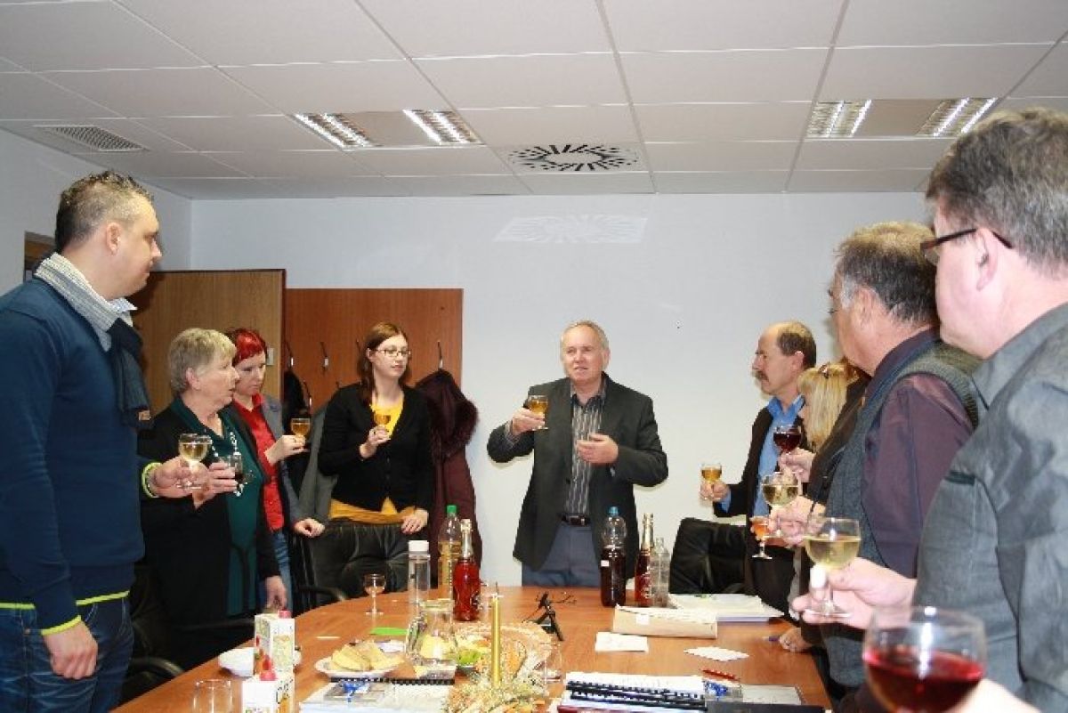 Času primerno se je srečanje mirnskih svetnikov, župana in občinske uprave končalo s stiski rok in z voščili, pa tudi s prigrizkom ter z dobro kapljico.
