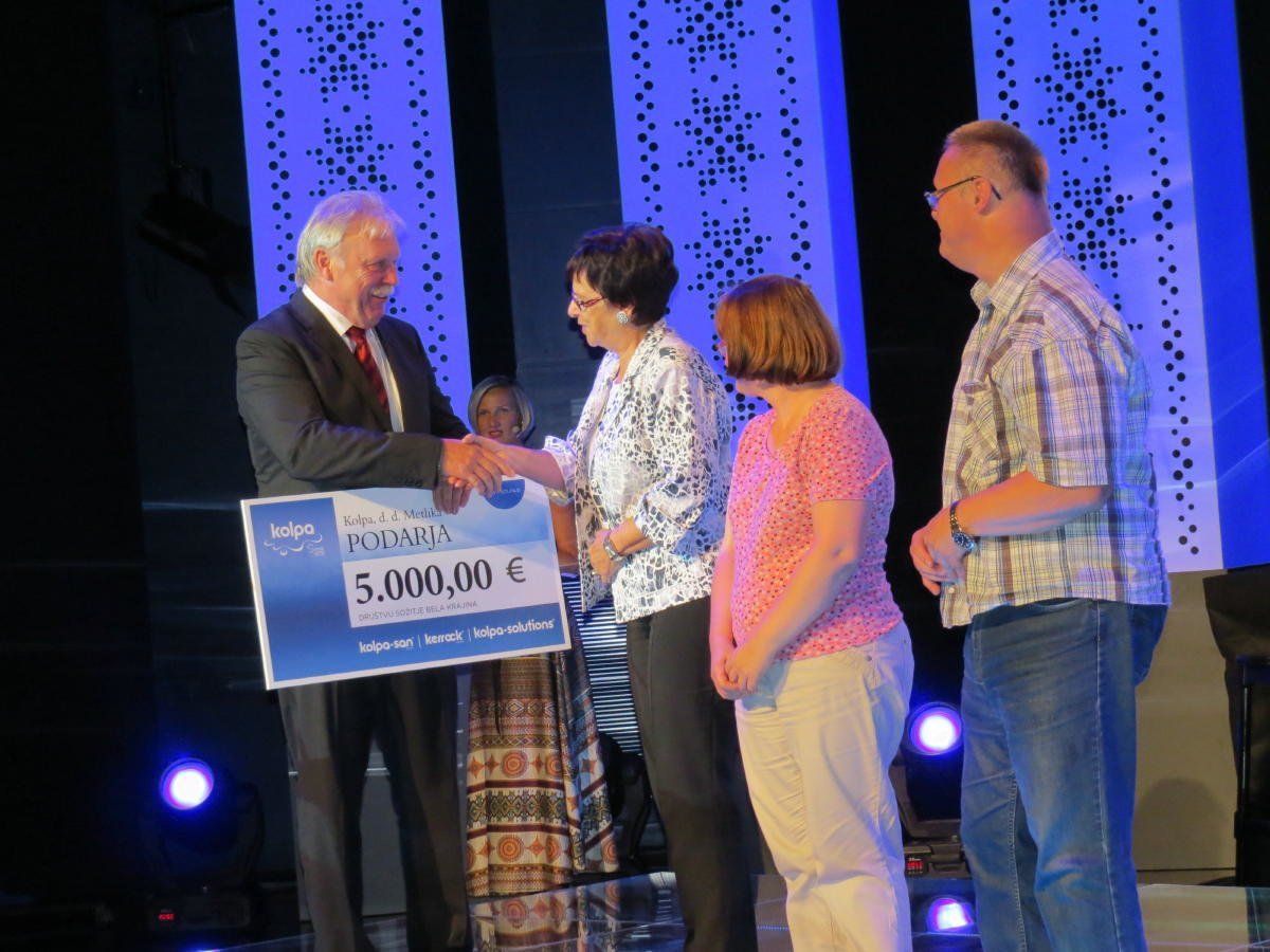 V Kolpi, ki je družbeno odgovorno podjetje, so se izkazali tudi tokrat. Mirjan Kulovec je predsednici belokranjskega društva Sožitje Heleni Domitrovič izročil bon za 5.000 evrov. Poleg knjig o zgodovini Kolpe, ki so bile na voljo zastonj, pa je bila skrinjica, v katero so obiskovalci prireditve lahko prispevali za rdeče noske.