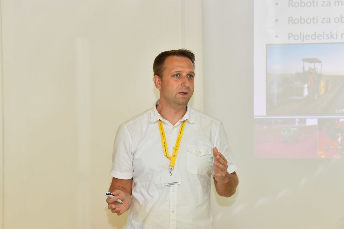 Profesor Jurij Rakun s katedre za biositemsko inženirstvo na mariborski Fakulteti za kmetijstvo in biosistemske vede je danes na Agri predstavil razvoj in uporabo robotike v kmetijstvu.