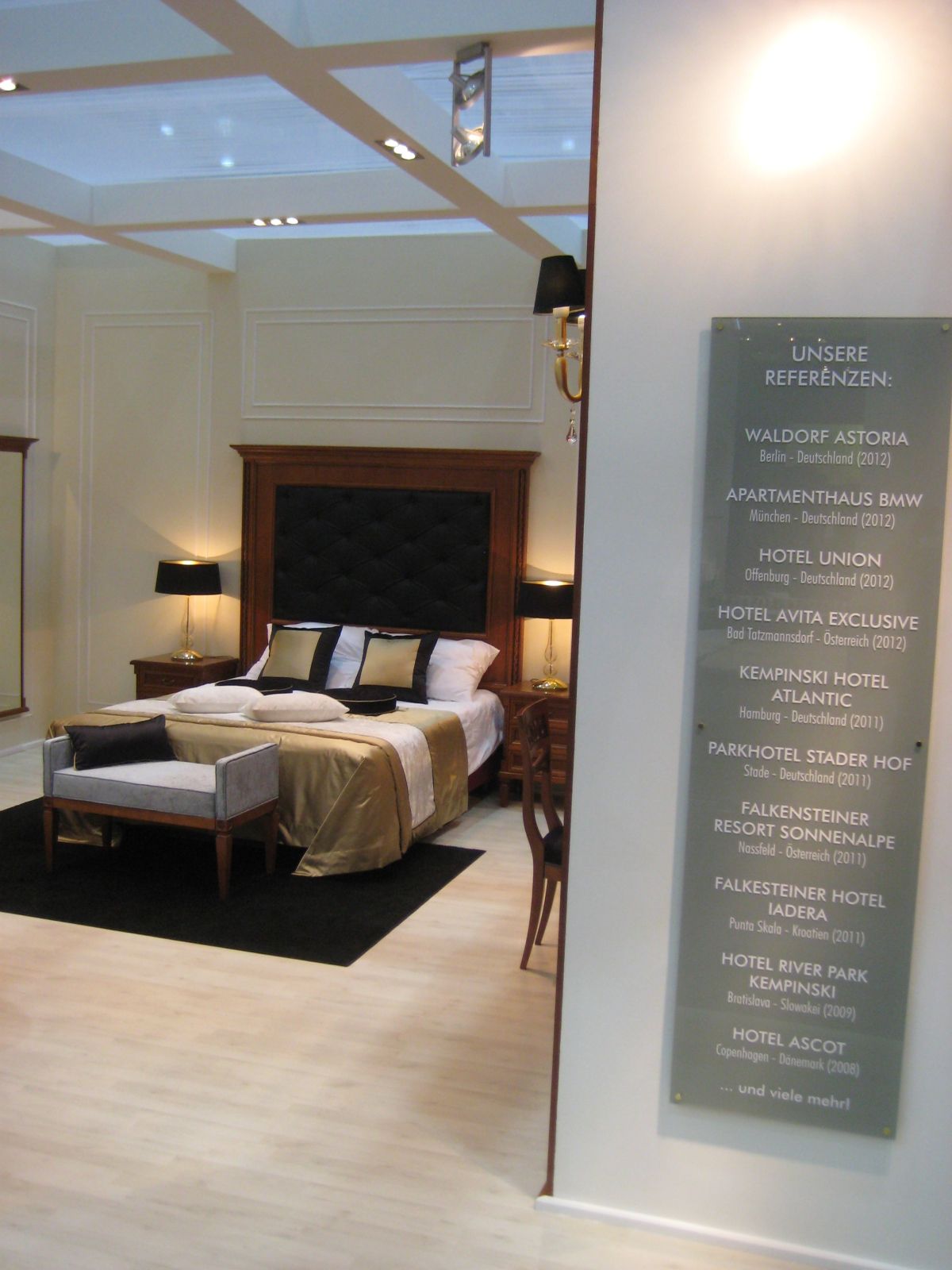 Stilles se je na 60 kv. m. kot edini slovenski razstavljavec predstavil z dvema vzorcema hotelskih spalnic, klasično in moderno. Prva je izpeljana iz znane Stillesove kolekcije Empire v barvi češnje, predstavljena pa je kot bogato zasnovan interjer za opremo hotelov s klasično noto. Druga zasnova je sodobnejša, zaznamujejo jo gladke linije in visok sijaj površinske obdelave v kombinaciji z beljenim hrastom in barvitimi tkaninami.