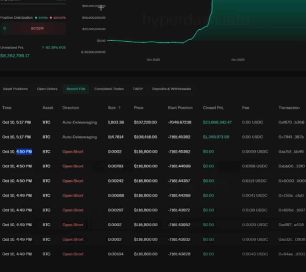 Manj kot 24 ur pred usodno drugo Trumpovo izjavo, povezano s Kitajsko (in ure pred prvim zapisom, ki bi morda lahko upravičil poteze sumljivih vlagateljev), so se sredstva začela zlivati v denarnico neznanega vlagatelja. Napolnjena z milijonskim kapitalom, je vlagatelju omogočila, da stavi na strm padec bitcoina in ostalih kriptovalut.