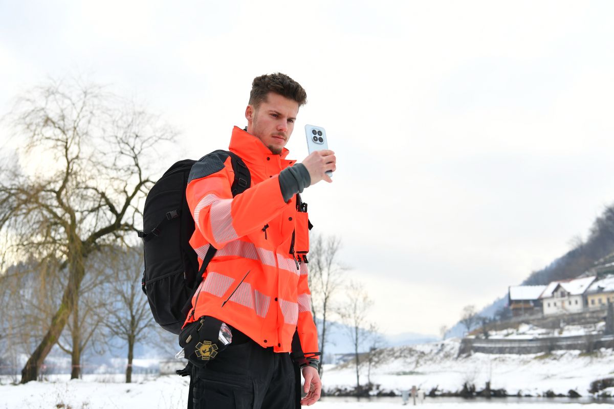 »Mora biti odporen na vse razmere in imeti zanesljivo baterijo,« pove brez olepševanja. Ko deluješ v mrazu, dežju, snegu ali vodi, ni prostora za odpovedi. »Če telefon odpove, izgubimo eno ključnih orodij pri reševanju.«