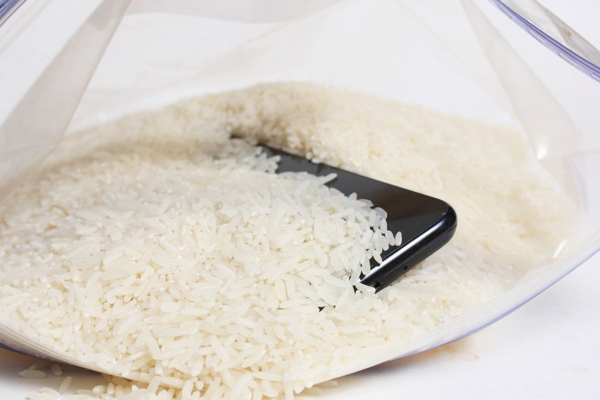 Dolgo je veljalo, da riž učinkovito posrka vlago iz premočenih naprav, a danes velja, da to ni najbolj pametna rešitev. Delci riža se lahko namreč zagozdijo v kotičke telefona, prašni delci v rižu pa lahko pridejo še globlje v notranjost naprave, kar zna uničiti napravo še hitreje kot vlaga.