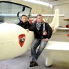 Ko smo se z veliko radovednostjo odpravili v Lesce na letališče, sta nas v hangarju ob flamingu pričakala Aleksander Špacapan – Šandor in Gašper Finžgar iz letalske šole Alpski letalski center Lesce. Upali smo, da bomo lahko poleteli, a nam vreme tokrat ni šlo na roko. Vseeno je sledil dolg, a zelo prijeten pogovor. »S tem letalom sem skupno preletel približno tri ure. Je aerodinamično zelo dovršeno izdelano, gre za robustno letalo, ki ima velik razpon hitrosti. Se ga tudi zelo lepo upravlja,« ga je po lastnih izkušnjah opisal Finžgar in dodal, da gre za zdaj za prototipno letalo, za njegovo izdelavo pa je zaslužna celotna ekipa ljudi na čelu s Špacapanom. »Ta projekt ne bi nastal brez ekipe, ki jo imam za sabo. Moj delček je samo en kamenček v mozaiku. Za konstrukcijo je poskrbel doktor znanosti, ki je tudi pilot, trikratni jugoslovanski državni prvak v jadralnem letenju, predavatelj strojništva … Sodelovali so tudi ugledni gospodje, ki so se ukvarjali s kompoziti na letalih še v Elanu. Tukaj je tudi svetovno znani aerodinamik Franco Orlando …« je povedal Špacapan. In ravno Orlando je po njegovih besedah glavni »krivec«, da so izdelali odlično letalo. »Franco je naredil v tem trenutku najboljše letalo v Sloveniji.«