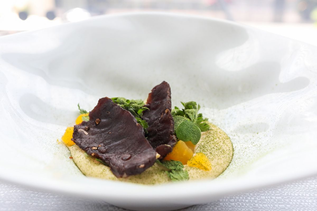Degustacijski meni chefa Galvagna je Slovence navdušil z eksplozijo okusov. Ob koprivni enolončnici s tarano – ocvrtimi testeninami, polnjenimi z dimljeno postrvjo in baso, je bil postrežen Boškinac Grand cuvée, letnik 2021. K liški malici – kremi iz fižola, kolerabi, soljenemu jelenjemu mesu in divjemu zelišču – se je odlično podal Boškinac Ocu, prav tako iz leta 2021. Za glavno jed, izvrstno jagnjetino s krompirjem in sveže nabranim motarjem z morske obale, ki je prav tako pripotoval v Ljubljano, pa je chef izbral kompleksni Boškinac Črni cuvée, letnik 2018.