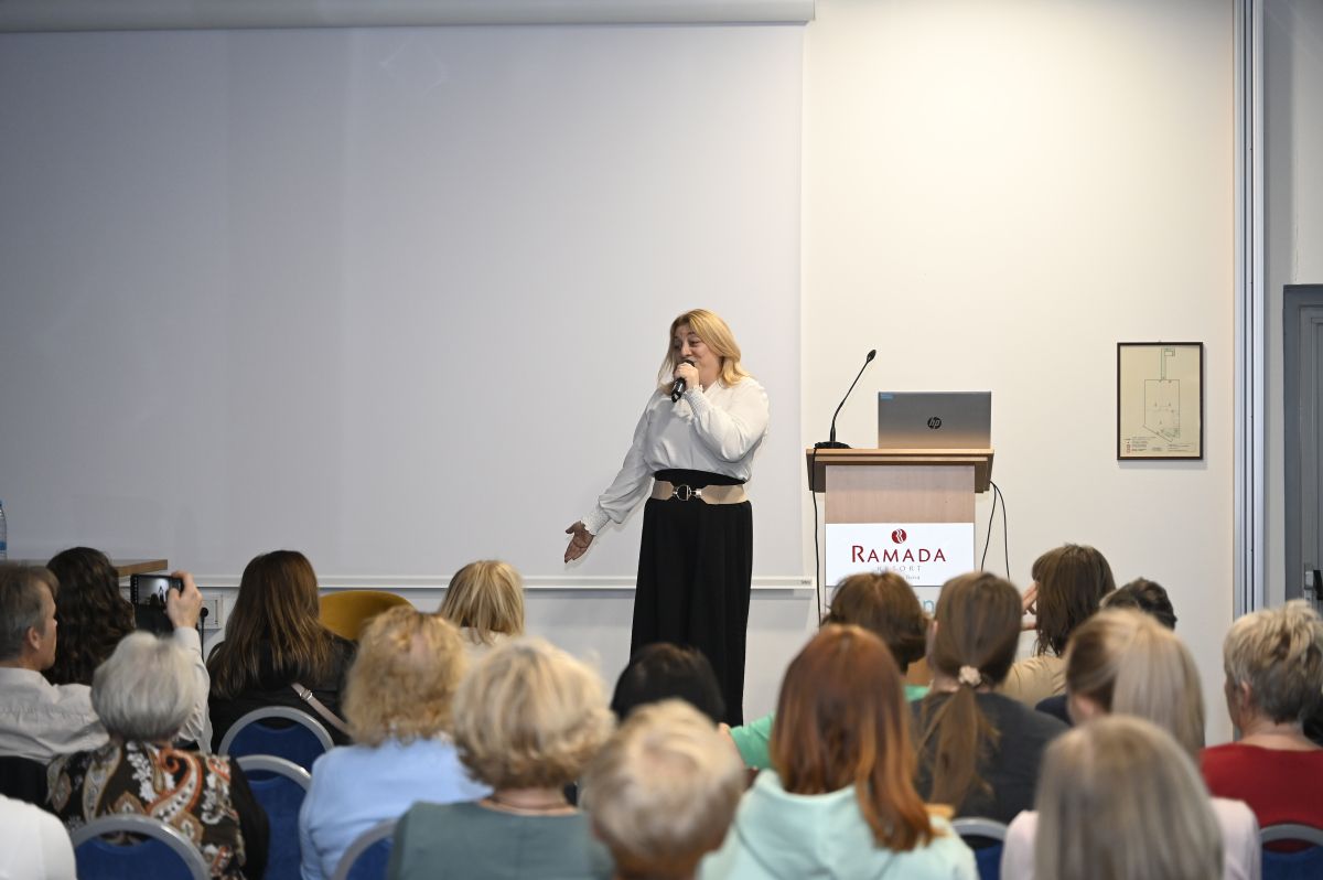 Vikend v hotelu Ramada Resort v Kranjski Gori je v svojem edinstvenem slogu začela s predavanjem o človeškem psihološkem zdravju Sanela Peresciutti. Spomnila nas je na to, da je življenje prekratko, da bi ga preživeli v zamerah, in poleg tega opomnila, da smo vsi ljudje med seboj povezani in naj vendar že nehamo z nenehnim medosebnim bojem, ker bomo tam na tisti zadnji postelji, ko morda ne bo ob nas nikogar, ki bi nam stisnil roko, to pošteno obžalovali. Če kdo ve, da je tako, ve z vsemi svojimi izkušnjami, ki kdaj niso prav lahke, prav Sanela.