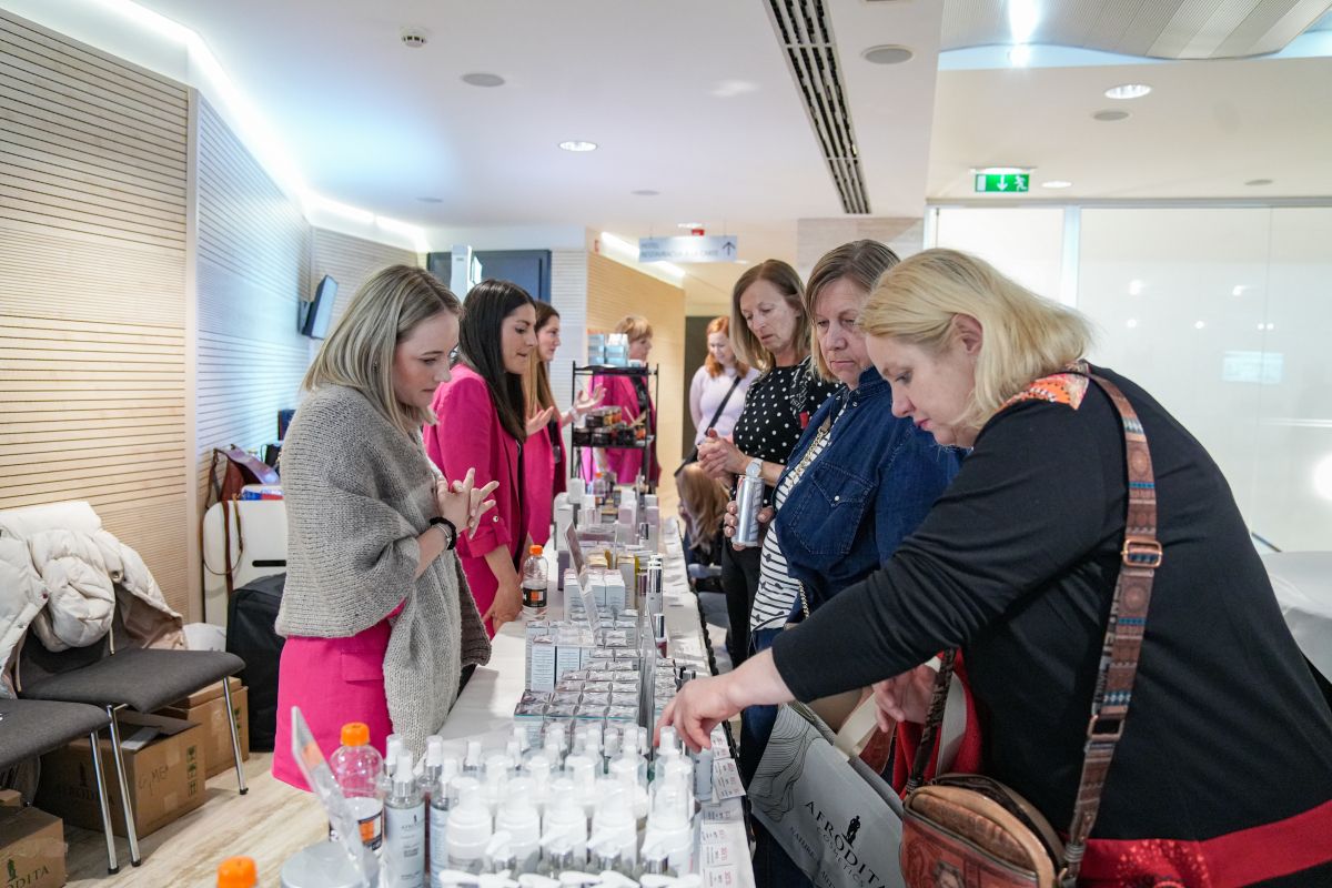 Sobotno jutro smo začeli z vodeno vadbo pod vodstvom Neže Rupnik, ki je združevala dihanje, elemente joge in vaje za boljše zavedanje telesa. Sledila so predavanja, ki so odpirala pomembne življenjske teme: Ema Cindro Kostelec, dr. med., nam je v preprostem jeziku pojasnila več zdravstvenih dilem in težav, ki jih doživljamo, nadvse prijetni Žan Papič pa nas je skozi zelo iskren pogovor popeljal do razmisleka o prisotnosti, smehu in občutku izpolnjenosti. Katja Bercko iz Kozmetike Afrodita je razkrivala skrivnosti lepote in mladostne kože ob izvedbi popolne nege obraza na odru, dr. Tanja Selič Kurinčič pa je predstavila povezavo med telesom in umom skozi akupunkturo in medicinsko hipnozo.
