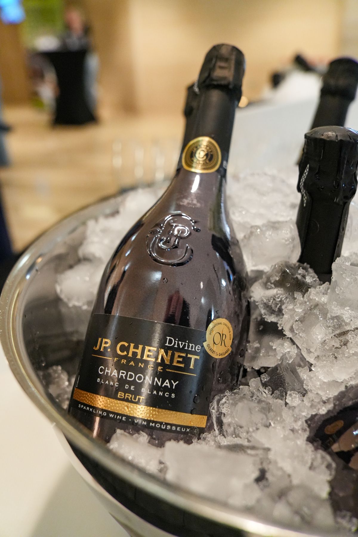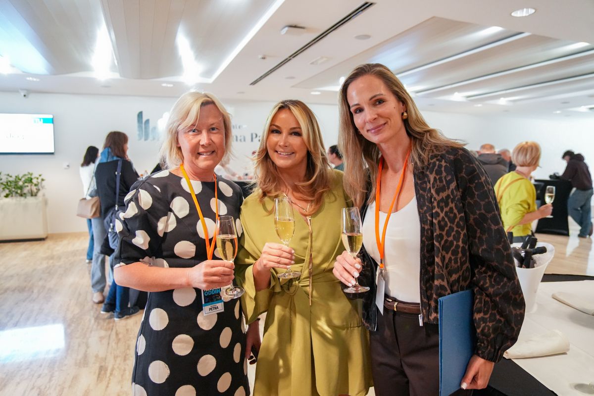 Petra Tiringar iz trženja Media24, Saška Lendero in voditeljica dogodka Mateja Špiranec so nazdravile s pijačo dobrodošlice, J.P. Chenet penino