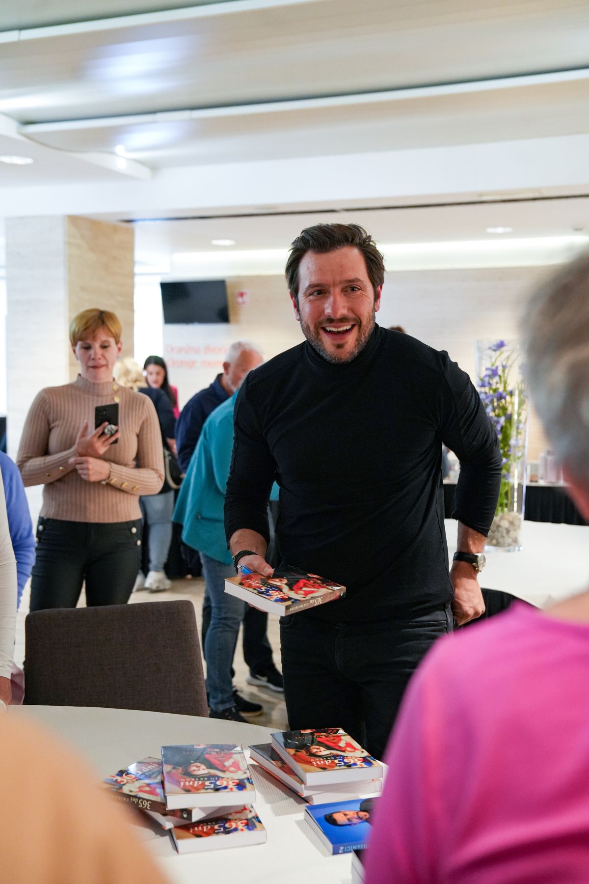 Martin Golob si je po pogovoru vzel čas za podpisovanje in posvetila v svojih knjigah: Na spletni prižnici, 365 dni z Božjo besedo in Na spletni prižnici 2.